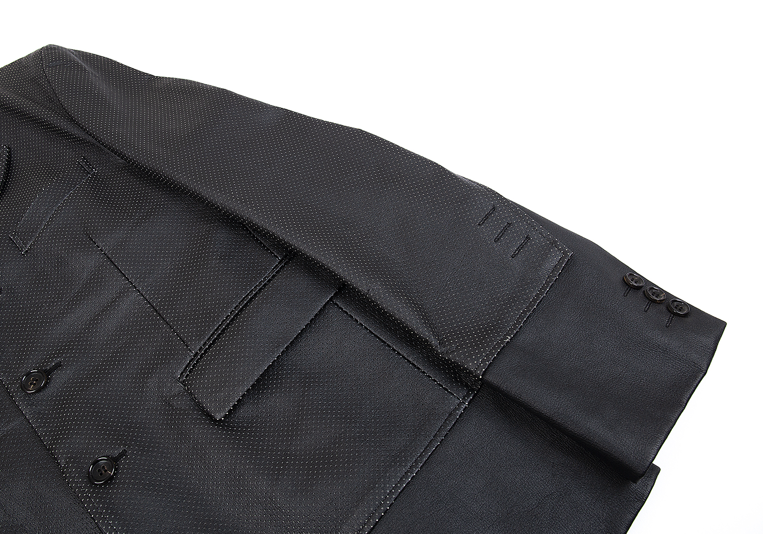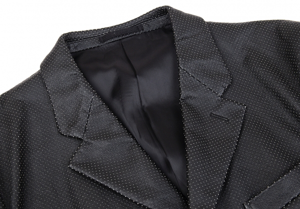 コムデギャルソン オムプリュスCOMME des GARCONS HOMME PLUS パンチングフェイクレザーレイヤード切替ドッキングロックジャケット 黒L