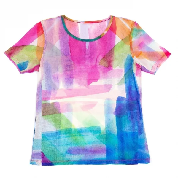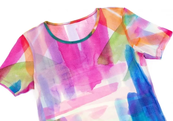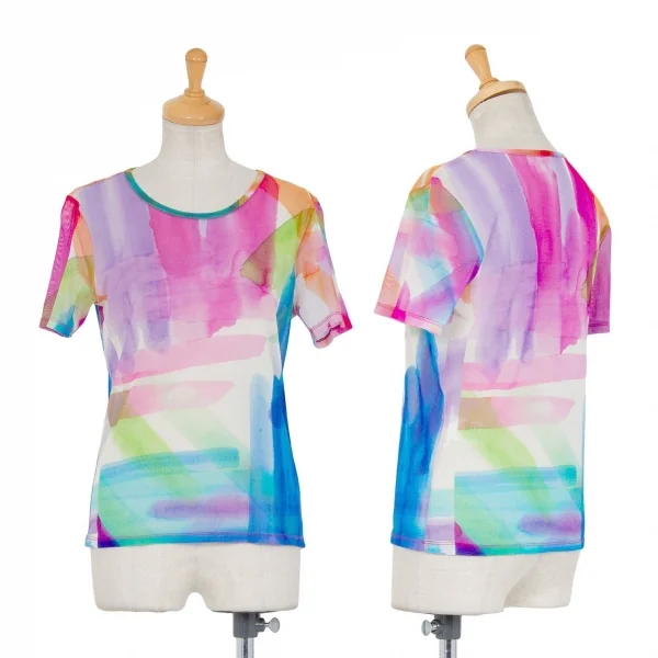 プリーツプリーズPLEATS PLEASE ドローイングプリントパワーネットTシャツ マルチ3