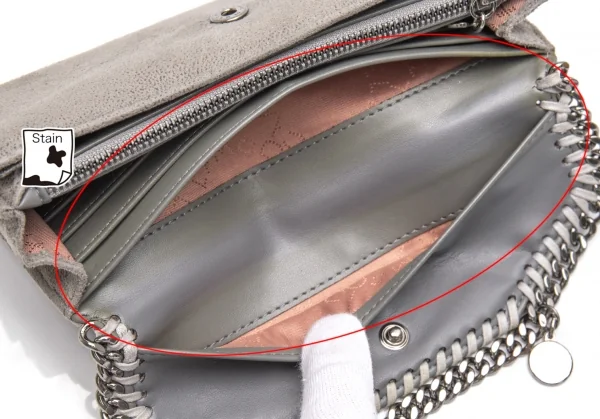 ステラマッカートニーSTELLA McCARTNEY ファラベラ コンチネンタル チェーン装飾長財布 グレー19×10