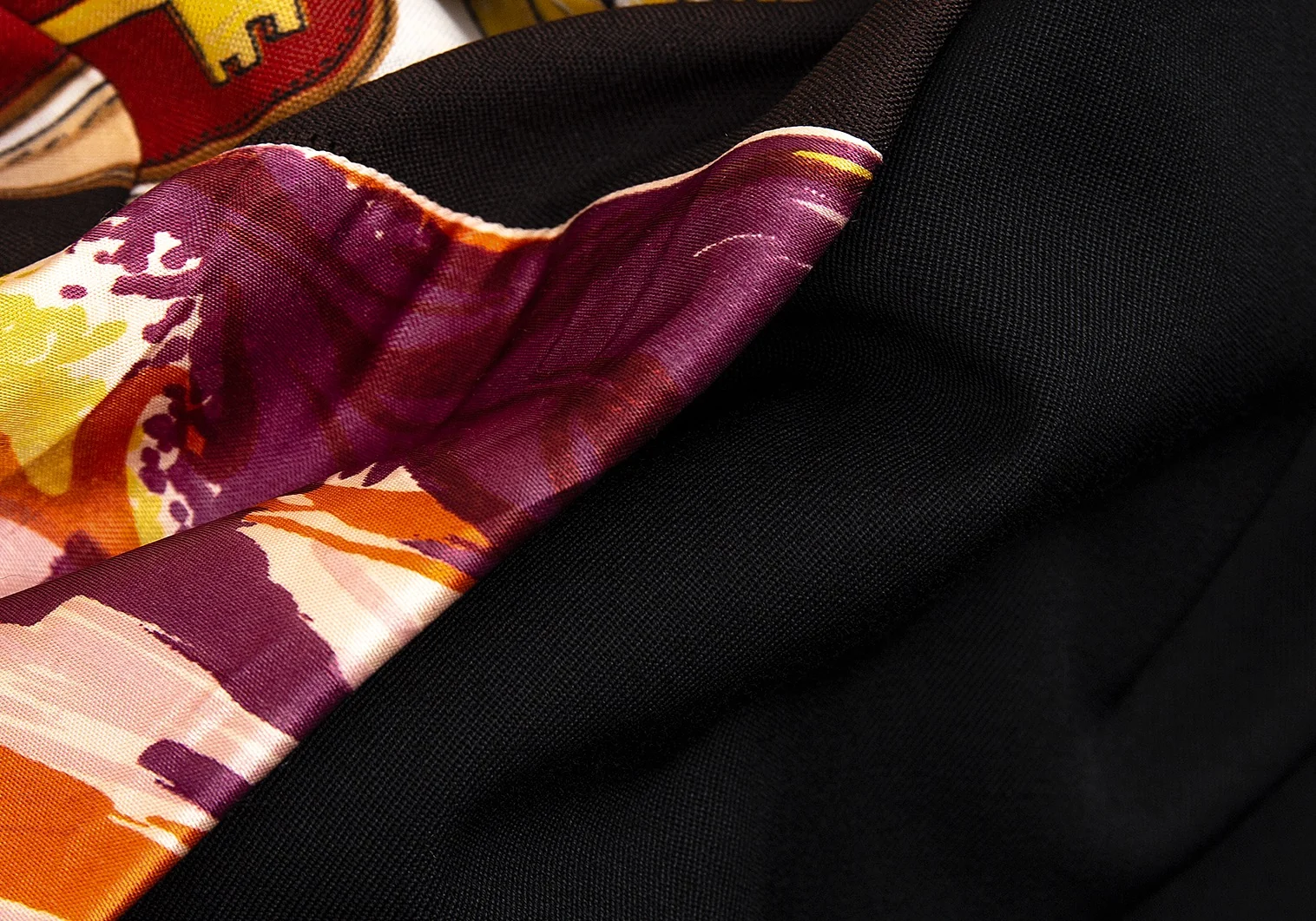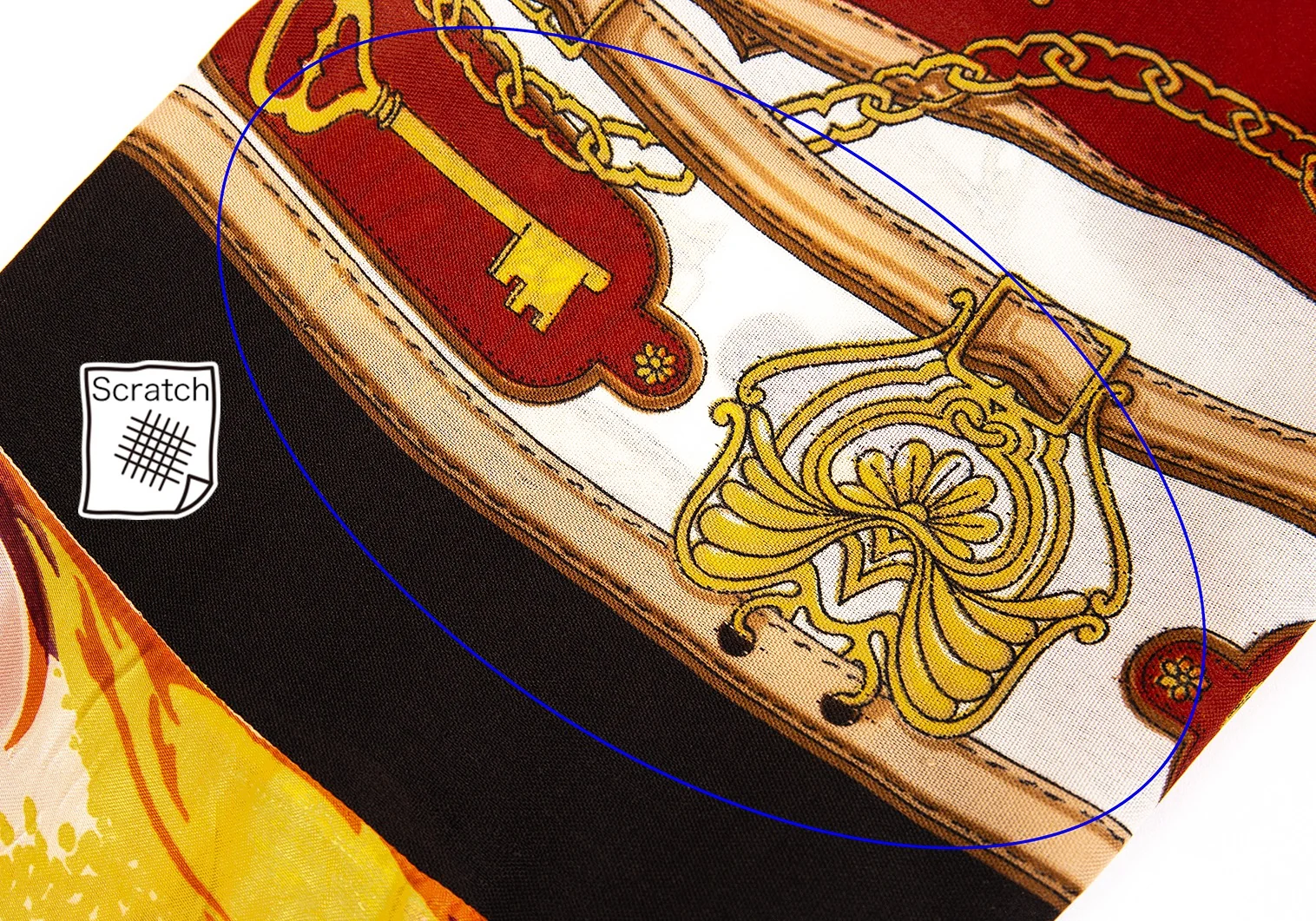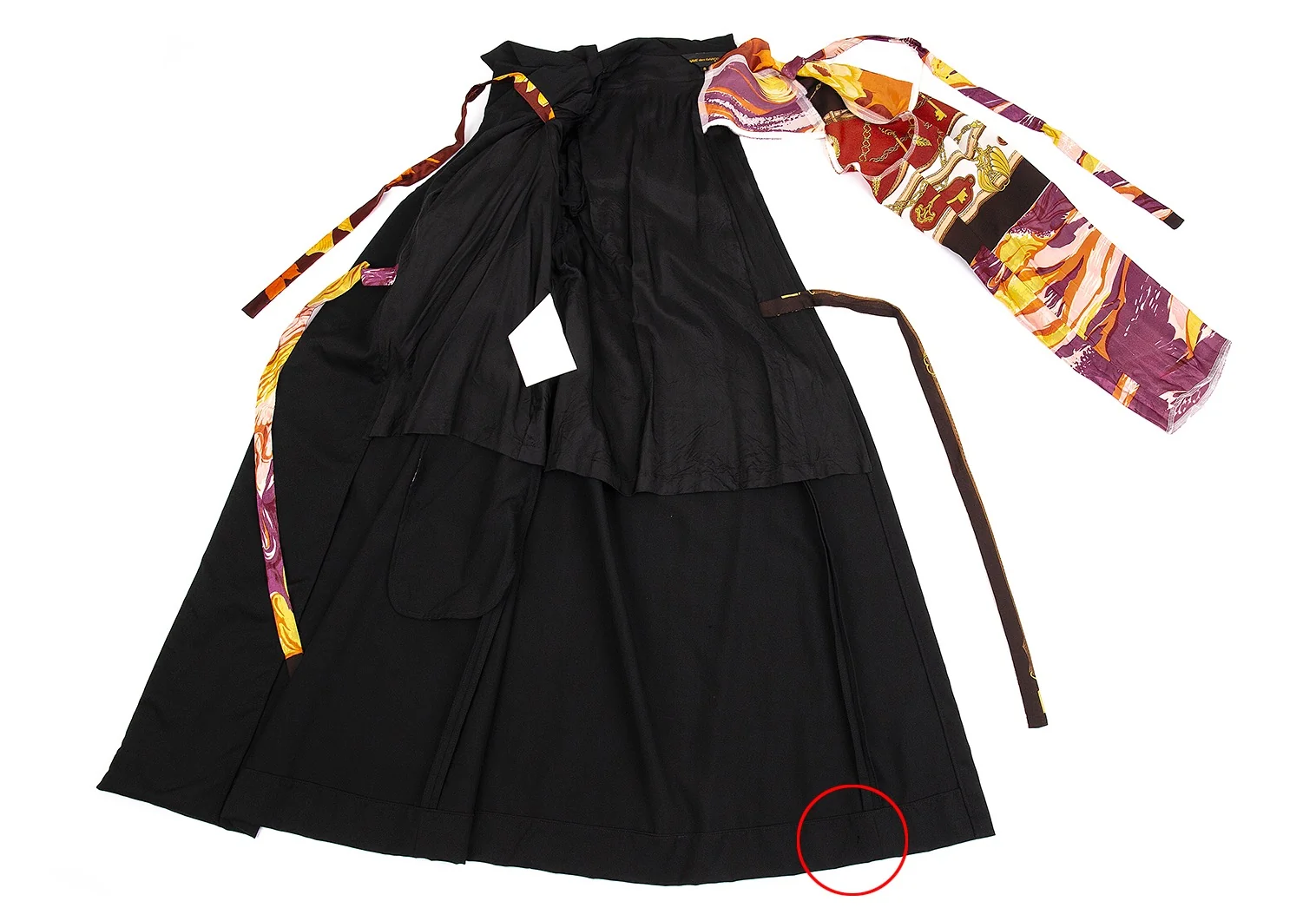 スカーフはヴィンテージ生地のため、元々の風合いでスレなどがあります。裏裾にダメージがあります(写真参照)その他目立ったシミ、汚れ、ほつれ等なくいい状態です。クリーニング済み
