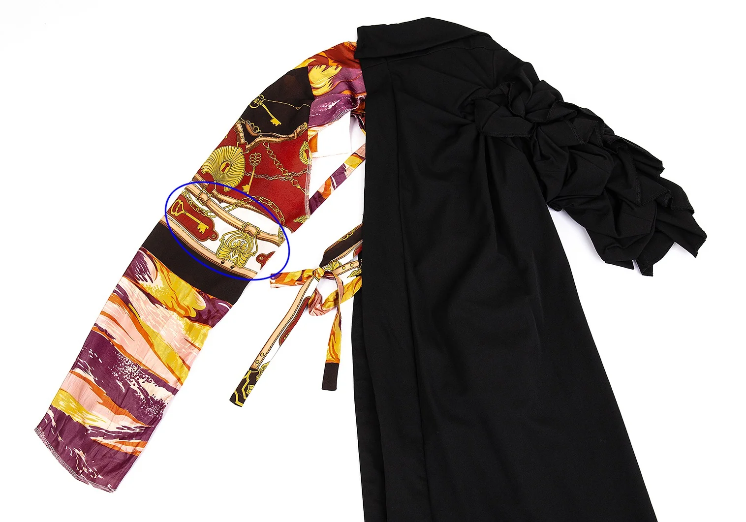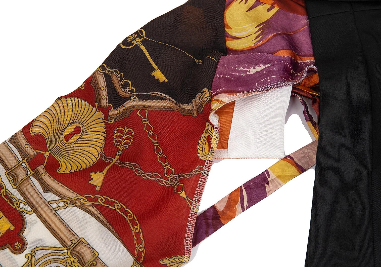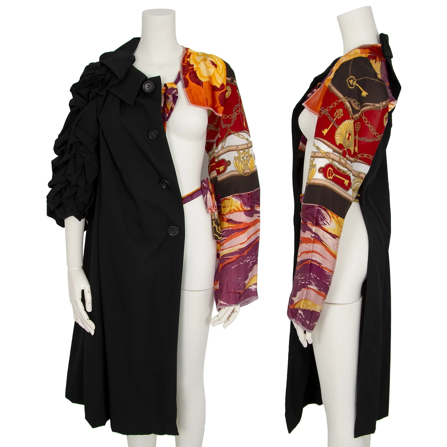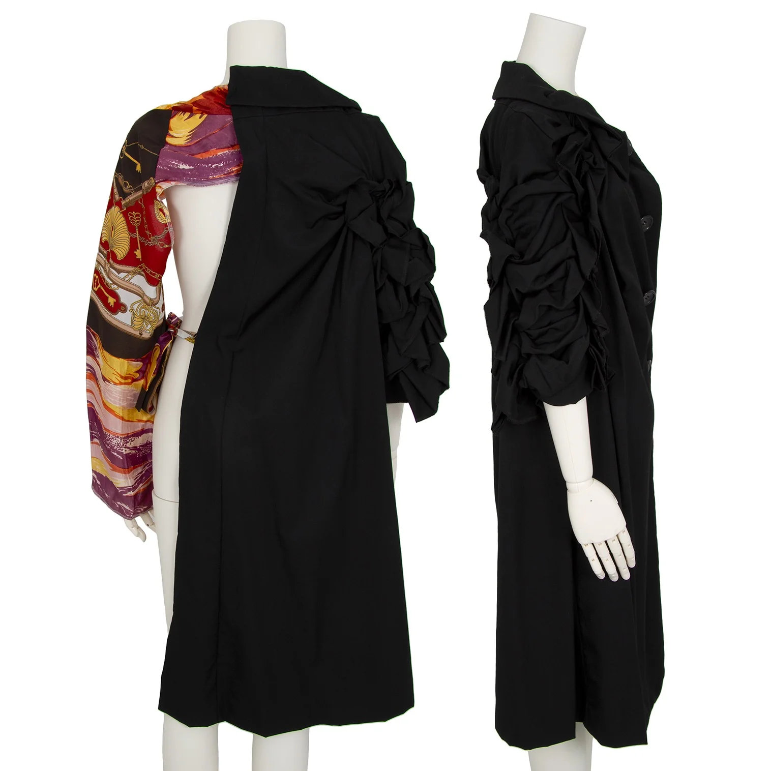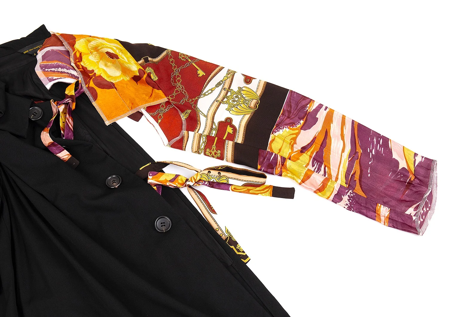 コムデギャルソンCOMME des GARCONS ビンテージスカーフアームスリーブドッキング袖フリル半身ジャケット 黒S