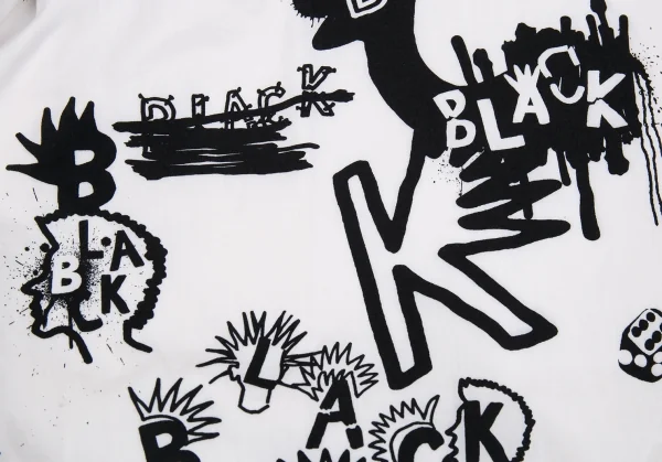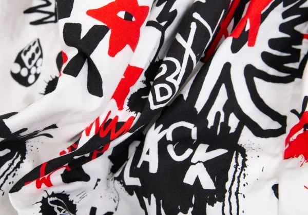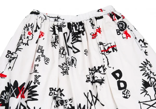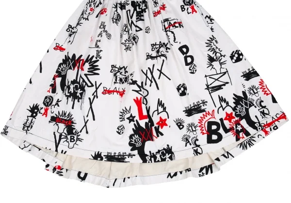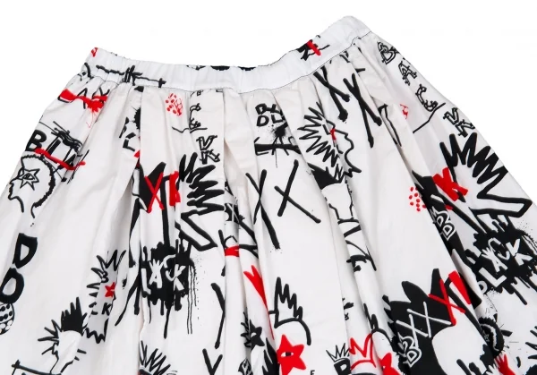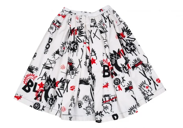 ブラックコムデギャルソンBLACK COMME des GARCONS グラフィティプリントバックプリーツコットンフレアースカート 白他S