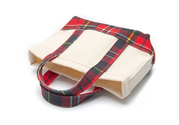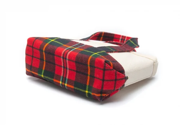 コムデギャルソンCOMME des GARCONS タータンチェックハンドルキャンバスミニバッグ 生成り他