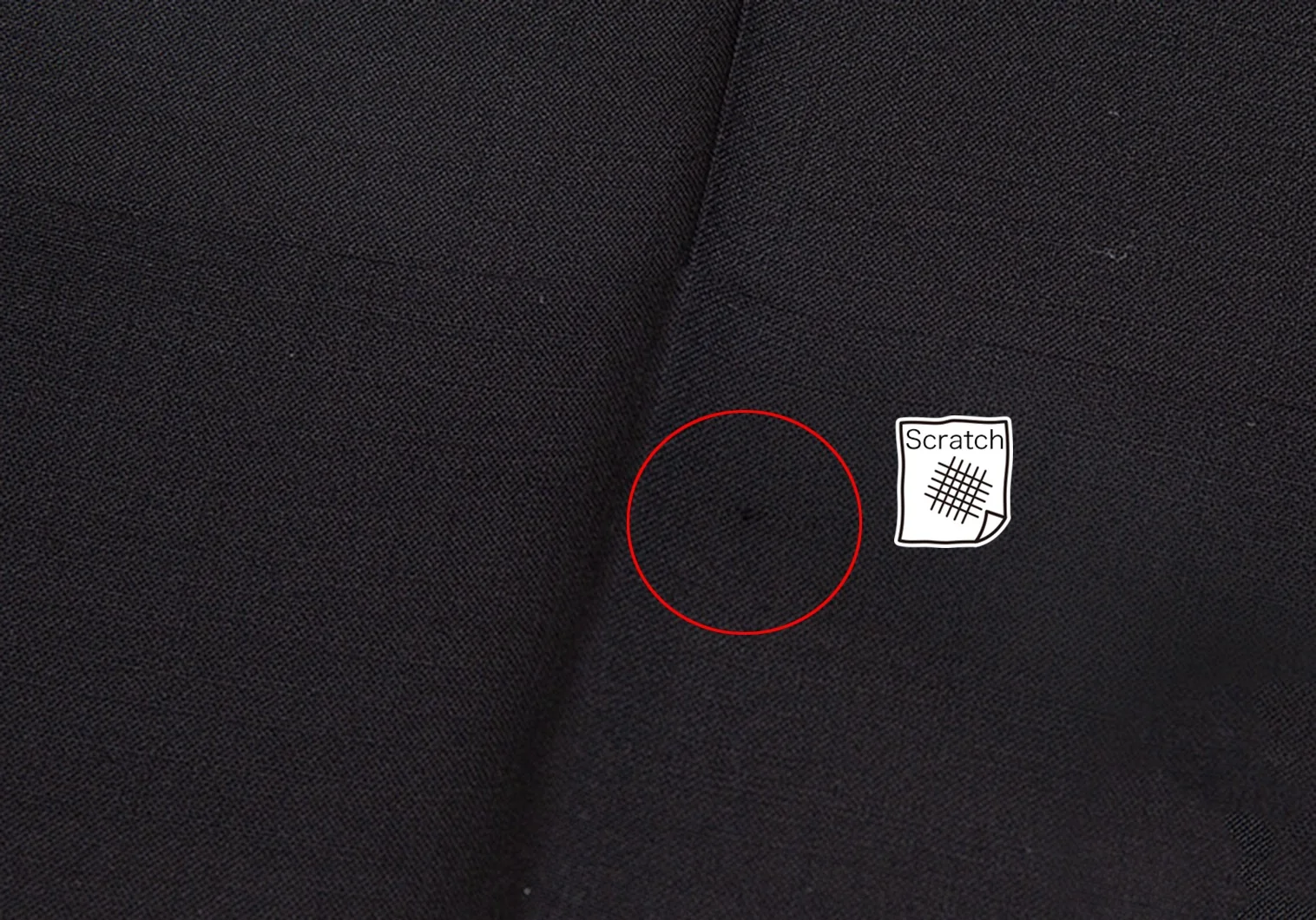前に擦れキズ・引っ掛けがあります(写真参照)。その他に目立ったシミ、汚れ等はありません。クリーニング済み