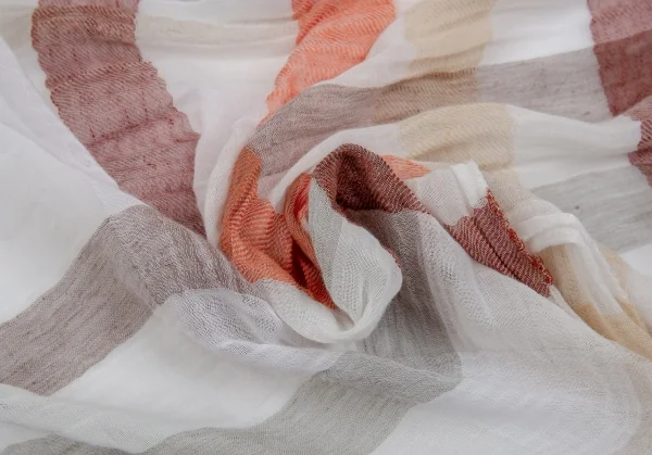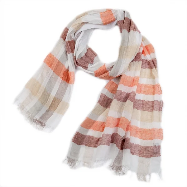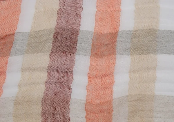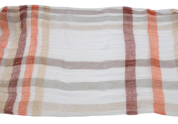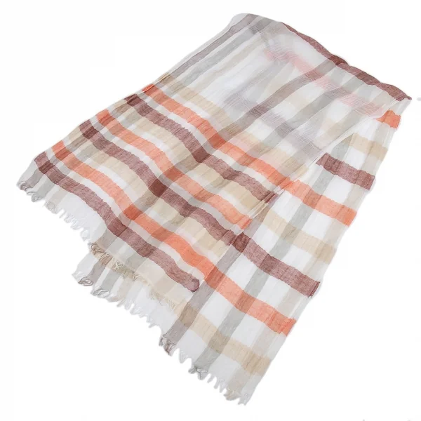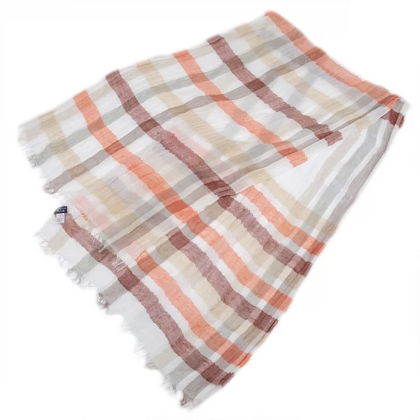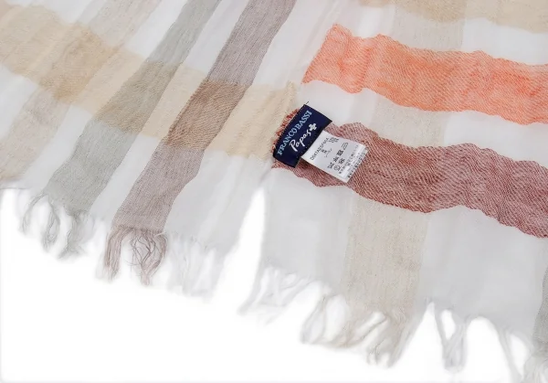 フランコバッシ パパス プラスFRANCO BASSI Papas +リネンコットンギンガムチェックストール ベージュオレンジ