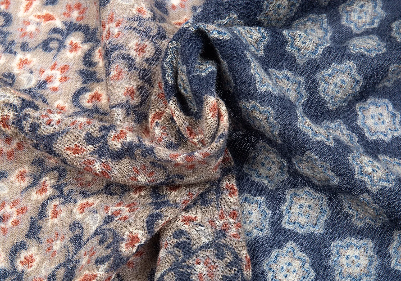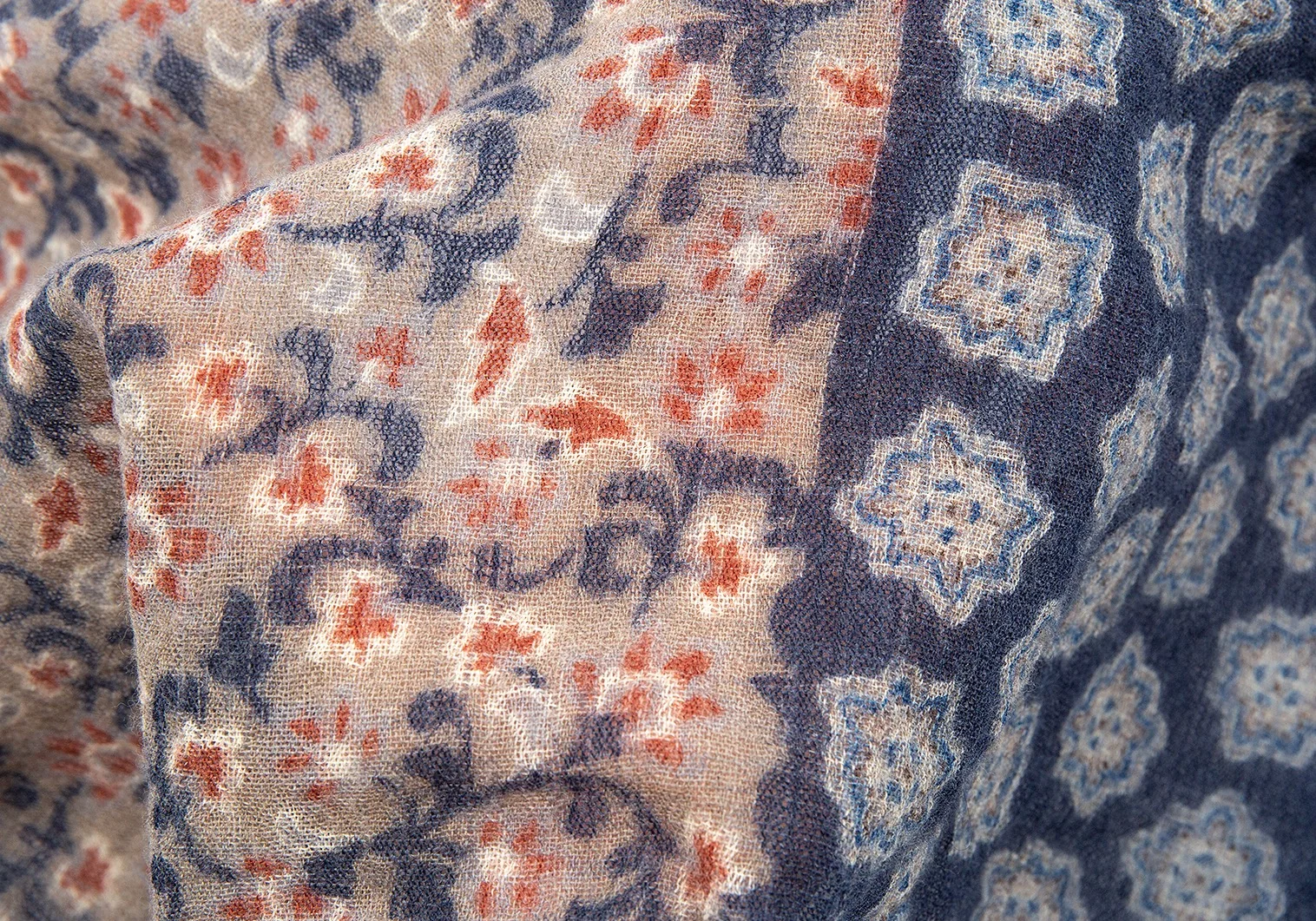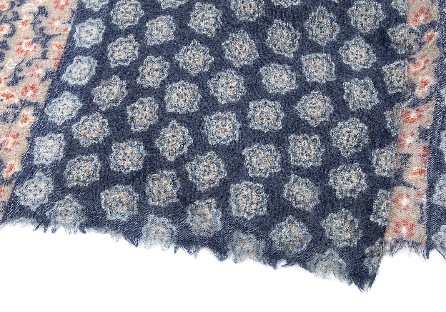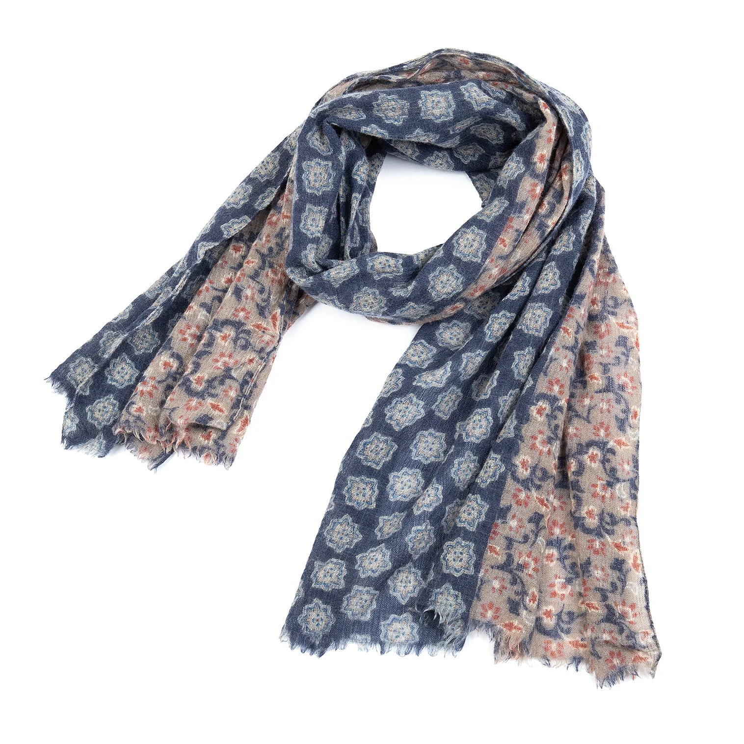 ジエッレ ミラノ for パパス プラスGIERREMILANO for Papas +花柄ウールストール 紺茶
