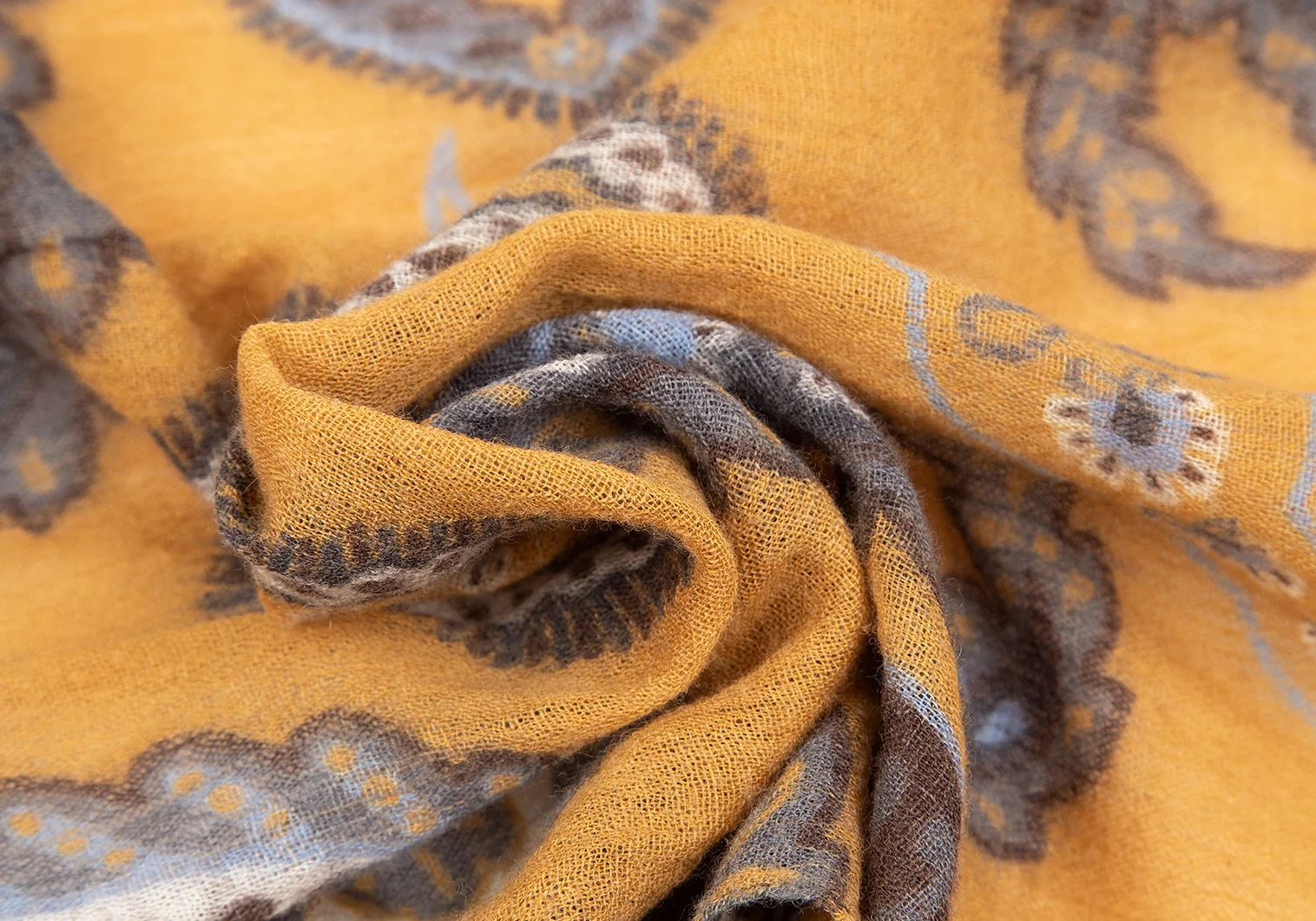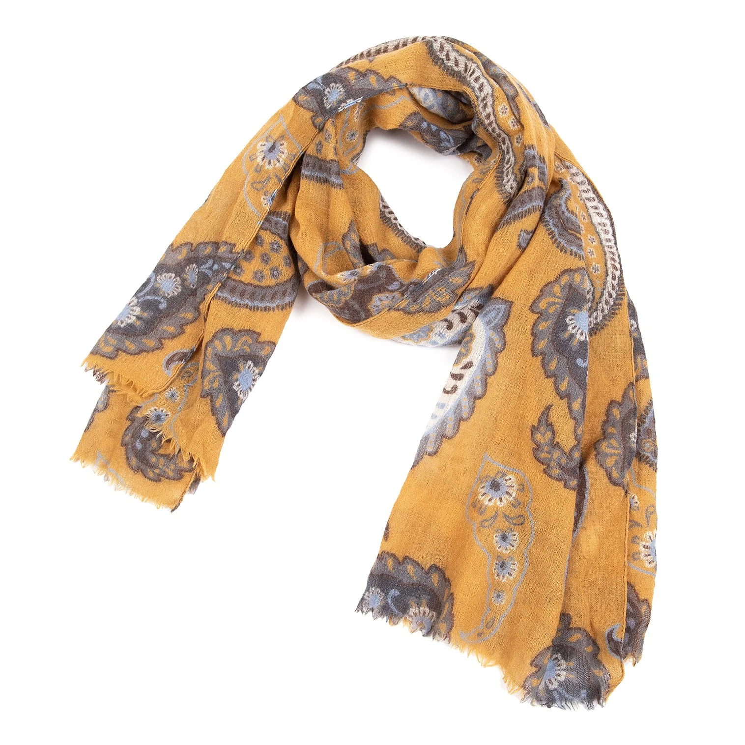 ジエッレ ミラノ for パパス プラスGIERRE MILANO for Papas +ペイズリー柄ウールストール 金茶