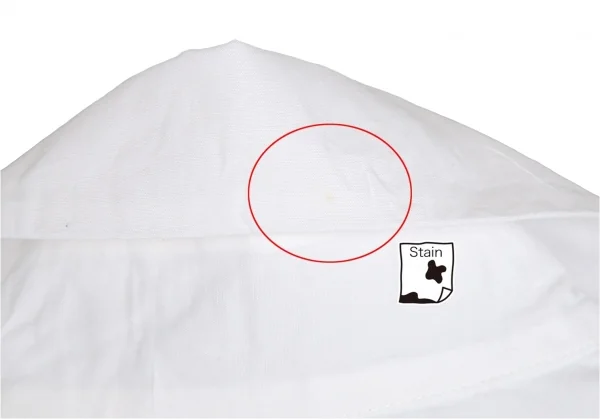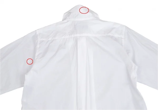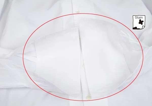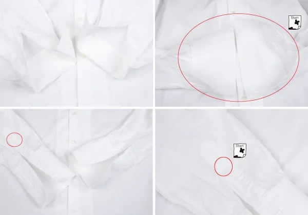 透け感のある生地です。首裏・襟裏・袖先裏・後左脇に薄汚れ、薄シミがあります(画像参照)。その他目立ったシミ、汚れ、ほつれ等ありません。クリーニング済み