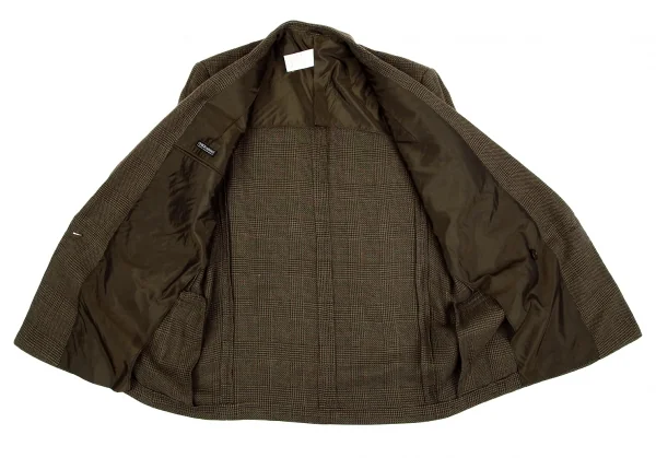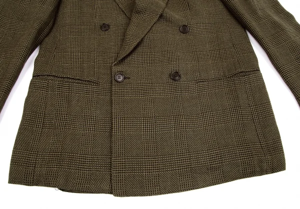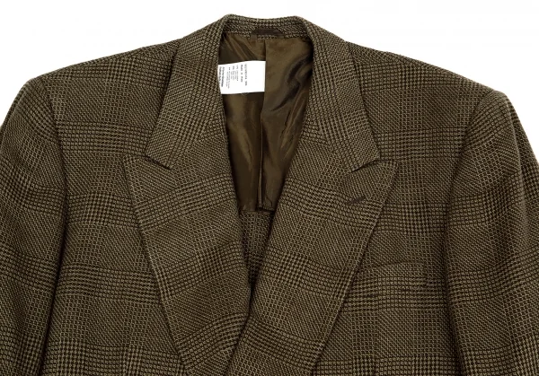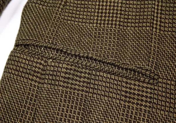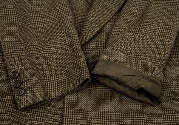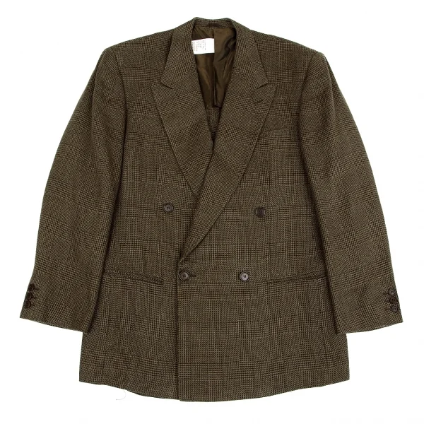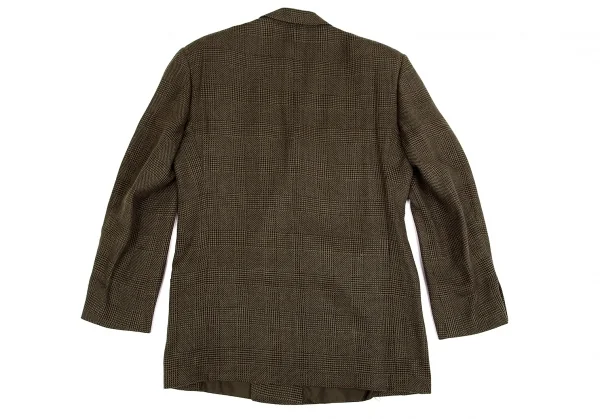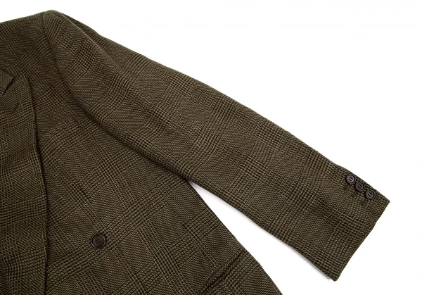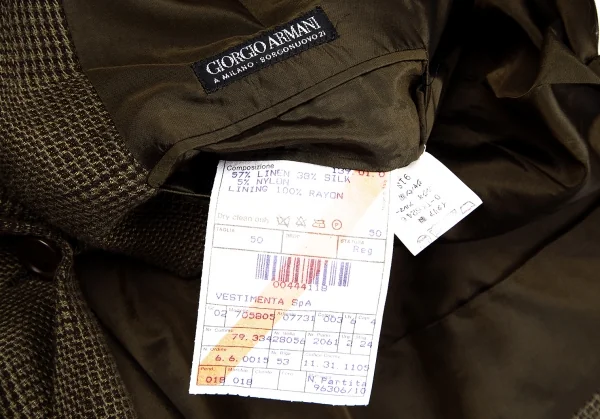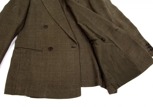 ジョルジオ アルマーニGIORGIO ARMANI リネンシルクチェックダブルジャケット 茶モカ50