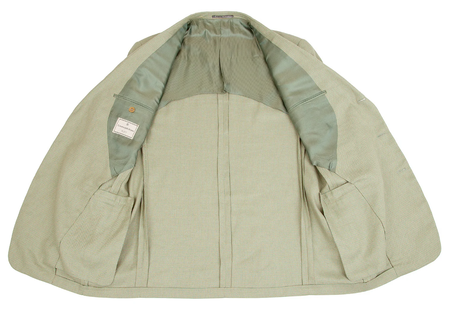エルメネジルドゼニアErmenegildo Zegna リネンシルクパピートゥースジャケット 緑ベージュ52