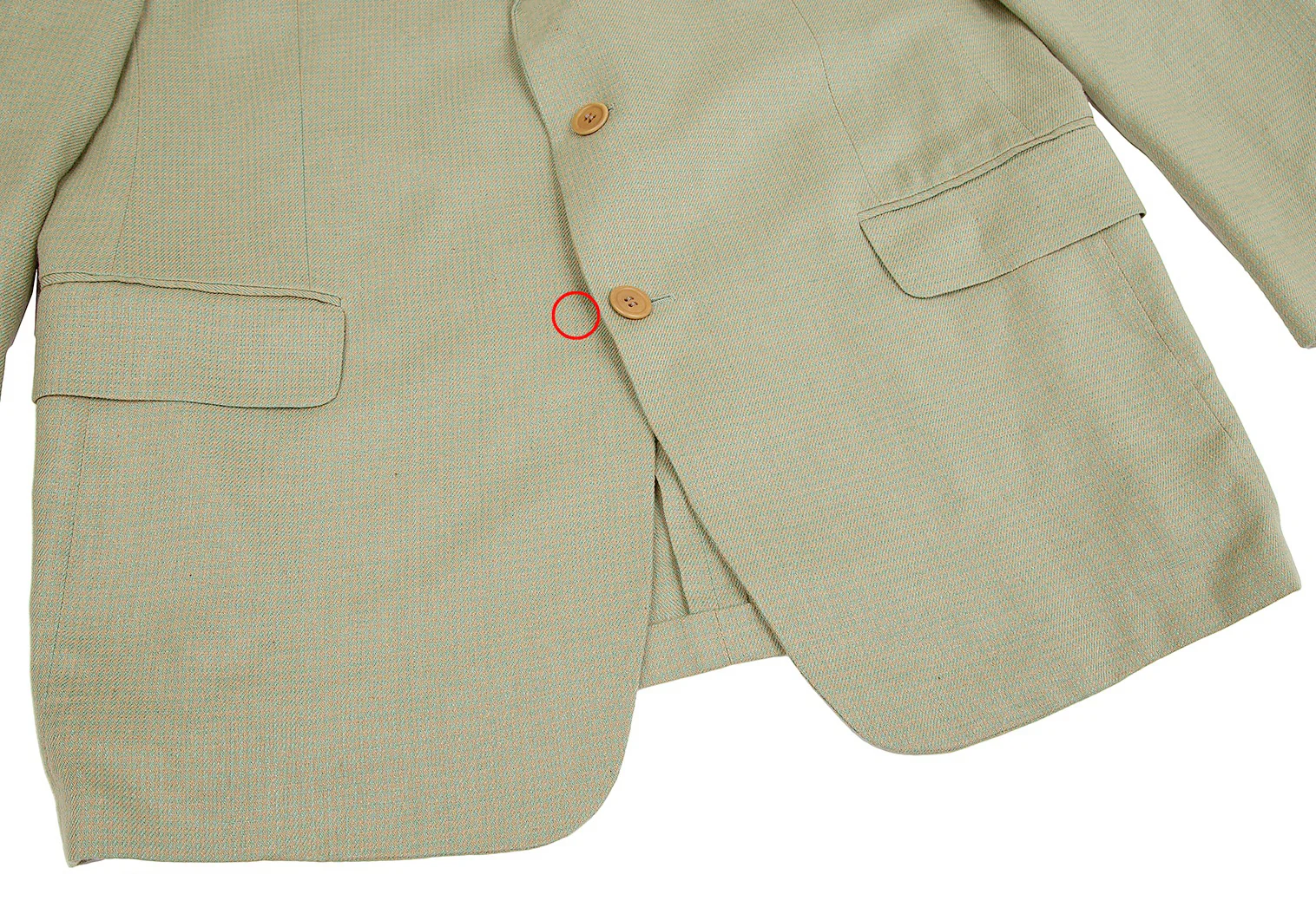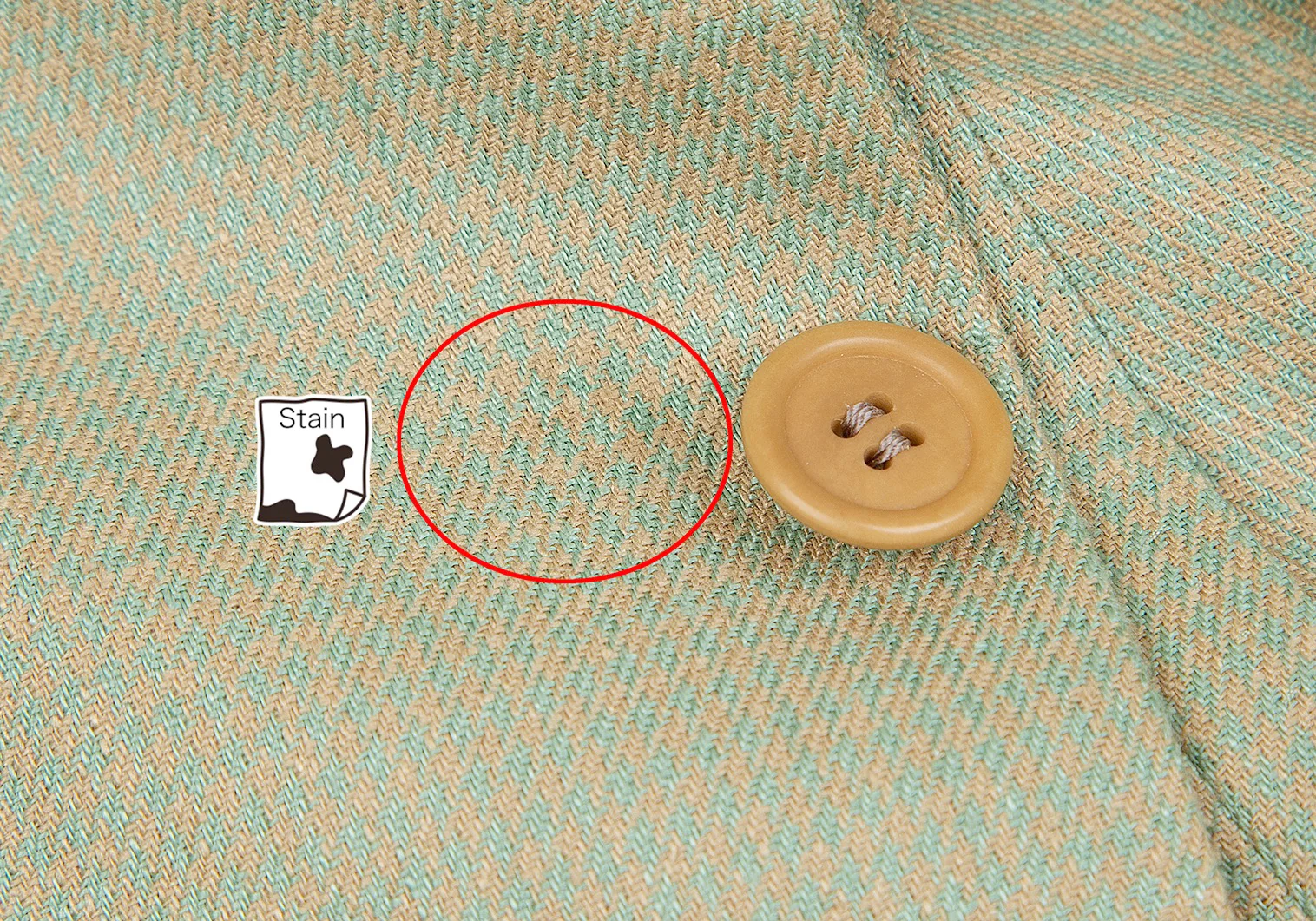 厚手の肩パッドあり。所々に織りムラがあります。前裾に薄シミがあります(画像参照)。その他目立ったシミ、汚れ、ほつれ等なくいい状態です。クリーニング済み