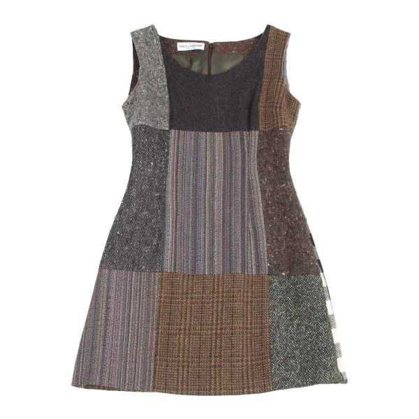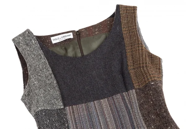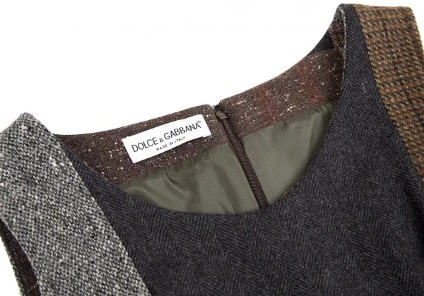 ドルチェ&ガッバーナDOLCE&GABBANA パッチワーク切替ノースリーブワンピース グレー他40