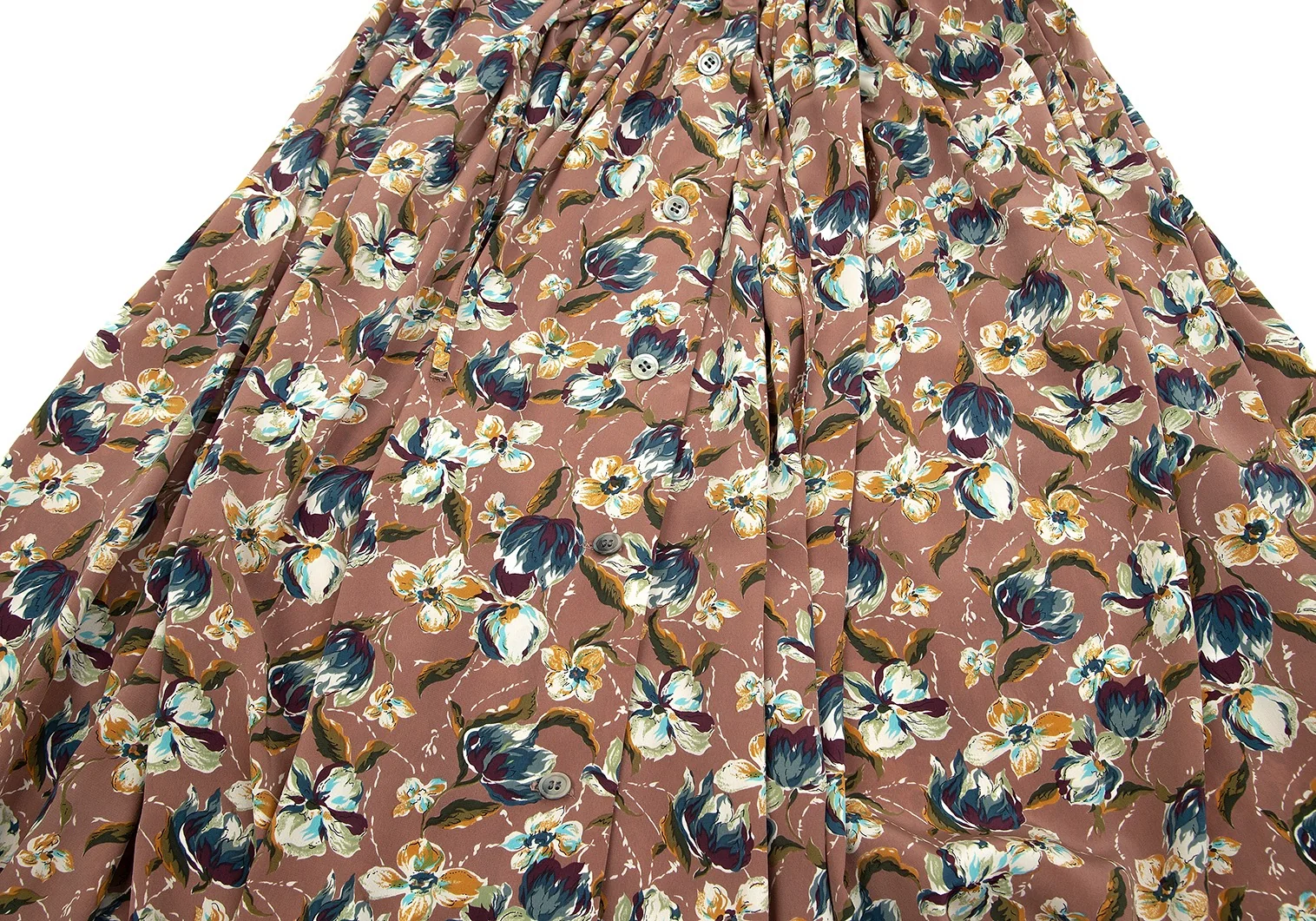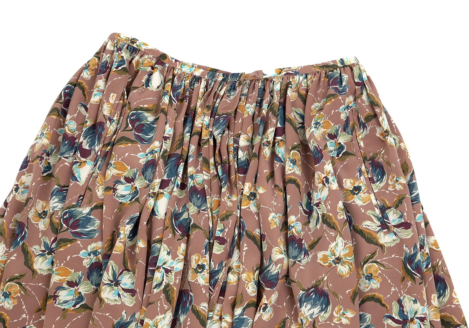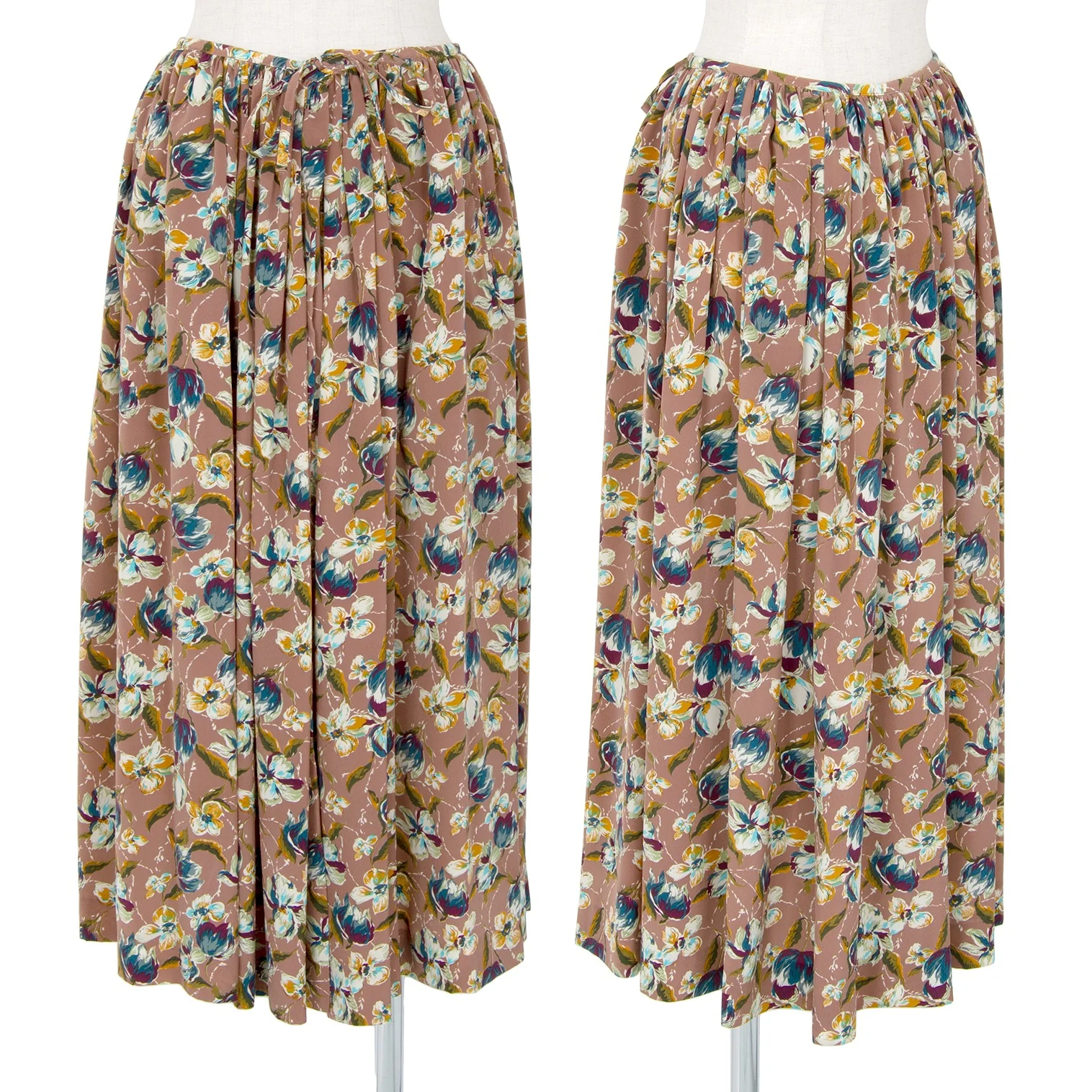 ジャンポールゴルチエ ファムJean Paul GAULTIER FEMME フローラルプリント前開きギャザースカート モカピンク他M位