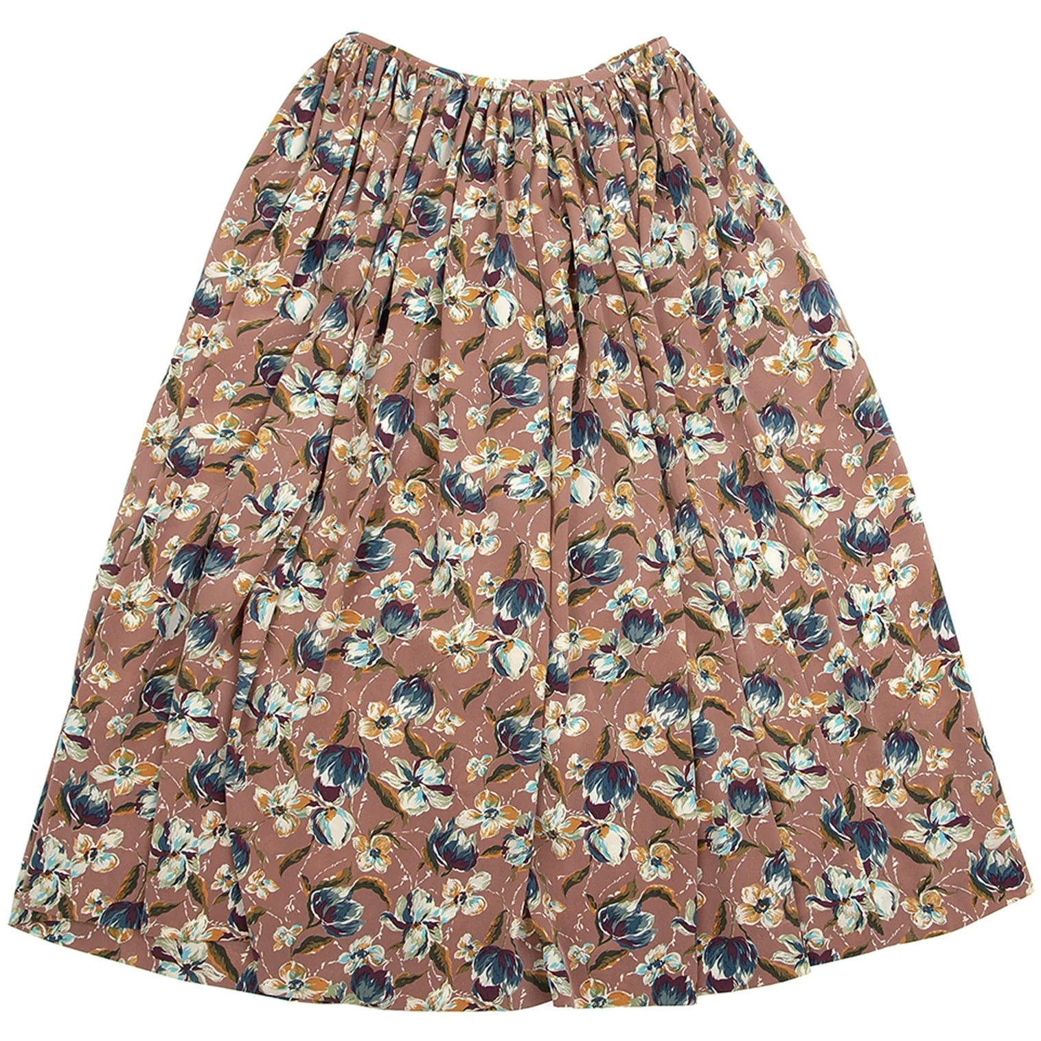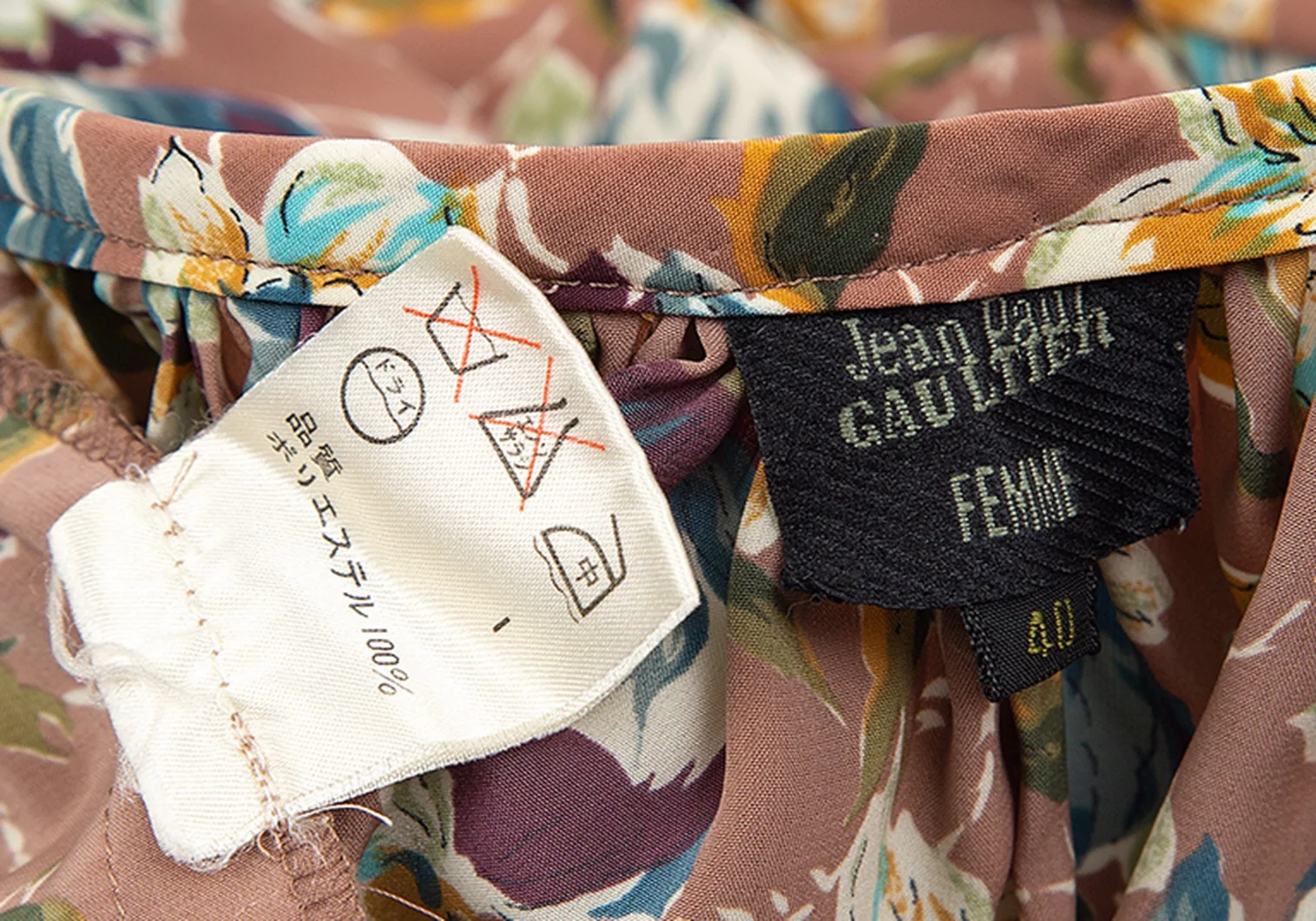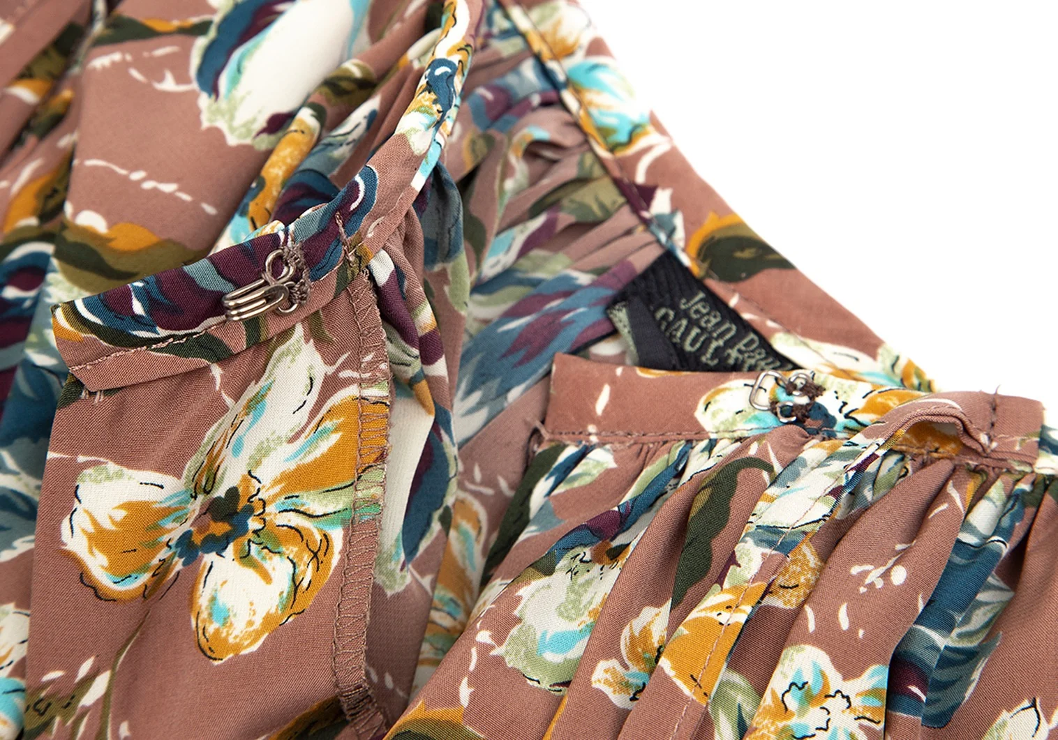 ジャンポールゴルチエ ファムJean Paul GAULTIER FEMME フローラルプリント前開きギャザースカート モカピンク他M位