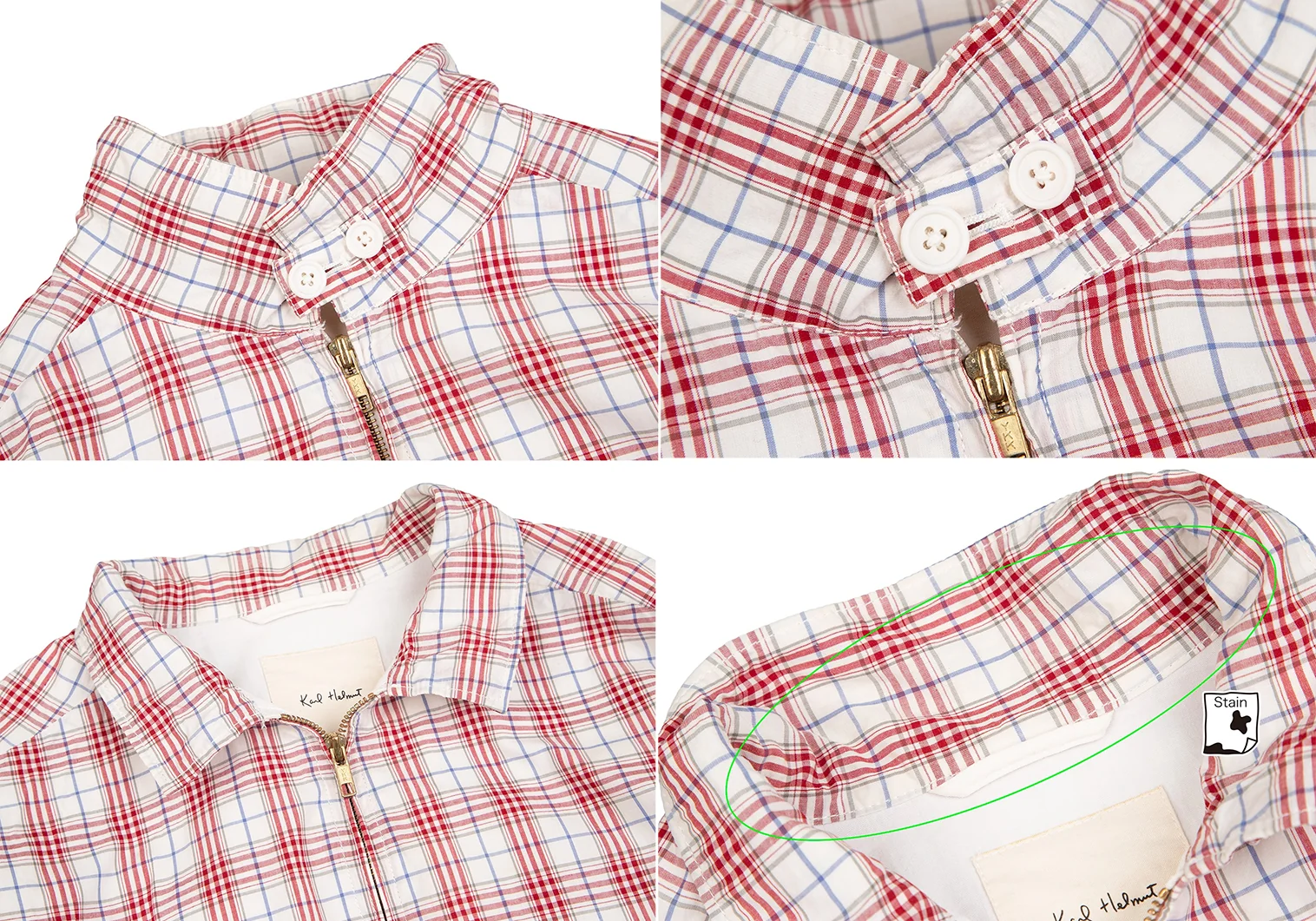 カールヘルムKarl Helmut コットンオーバーチェックジップアップブルゾン オフ赤他M位