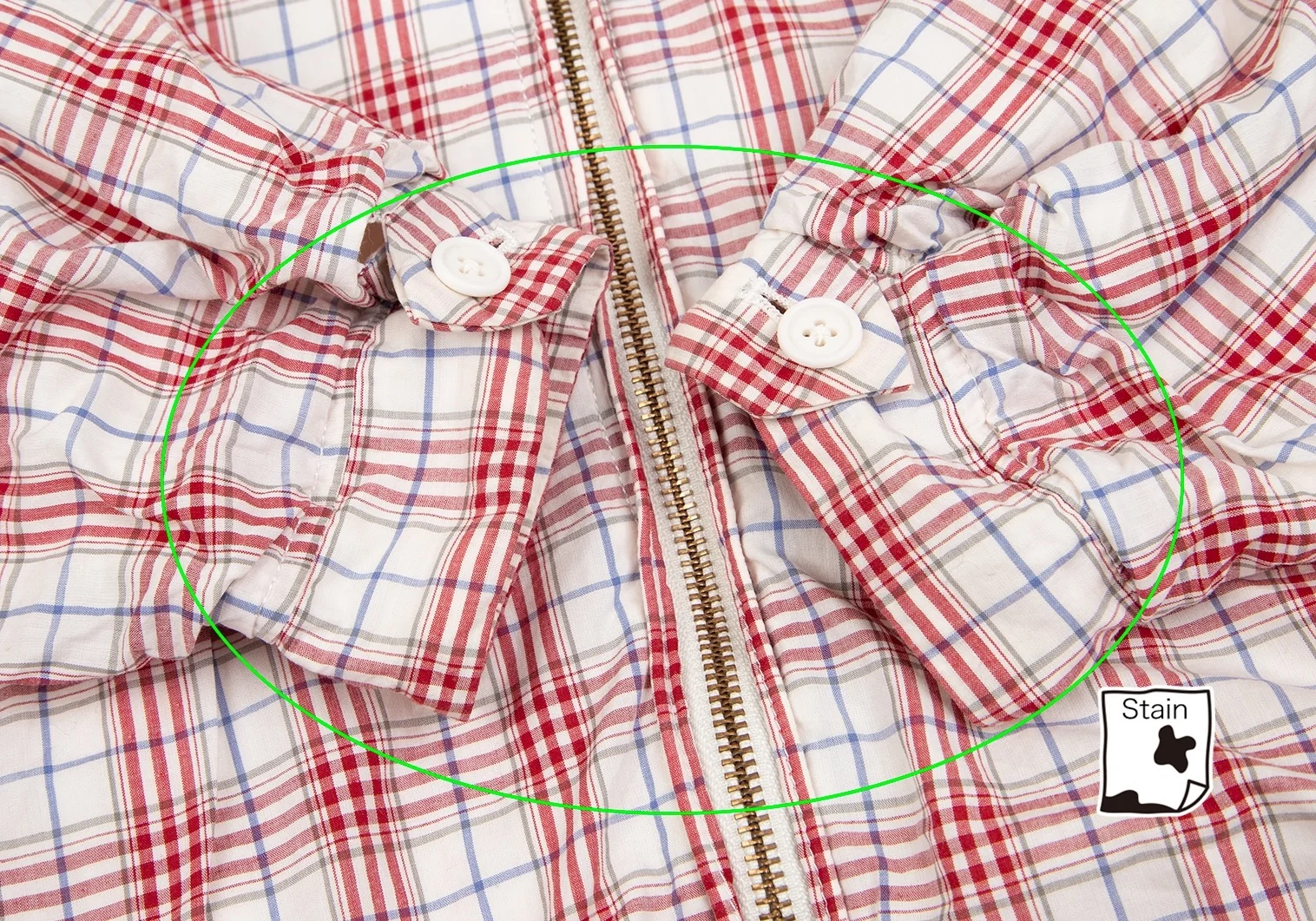 襟・袖薄汚れ、前後に薄シミがあります(写真参照)。その他目立ったシミ、汚れ、ほつれ等ありません。クリーニング済み