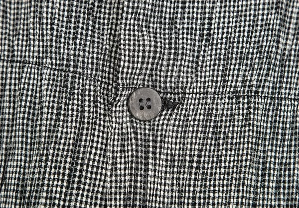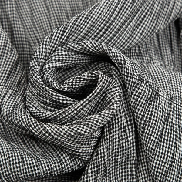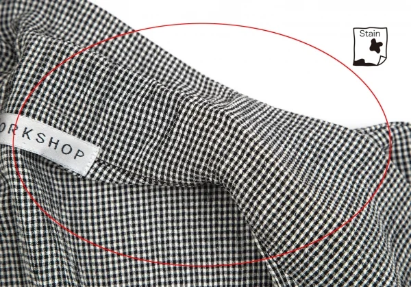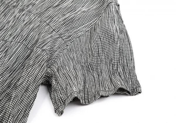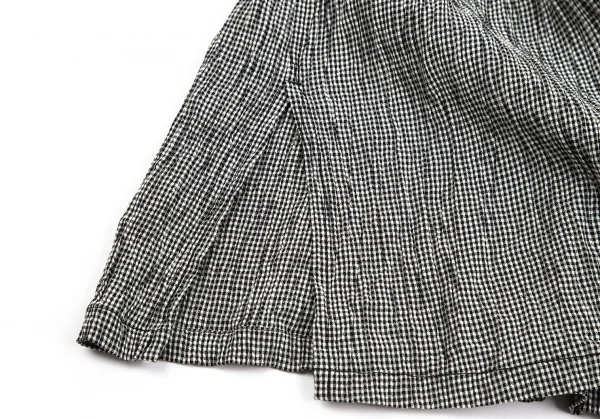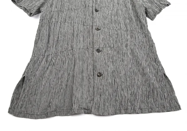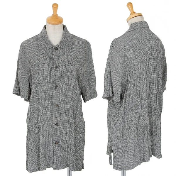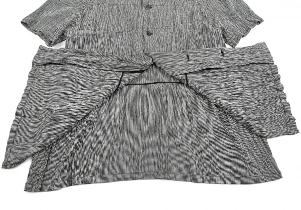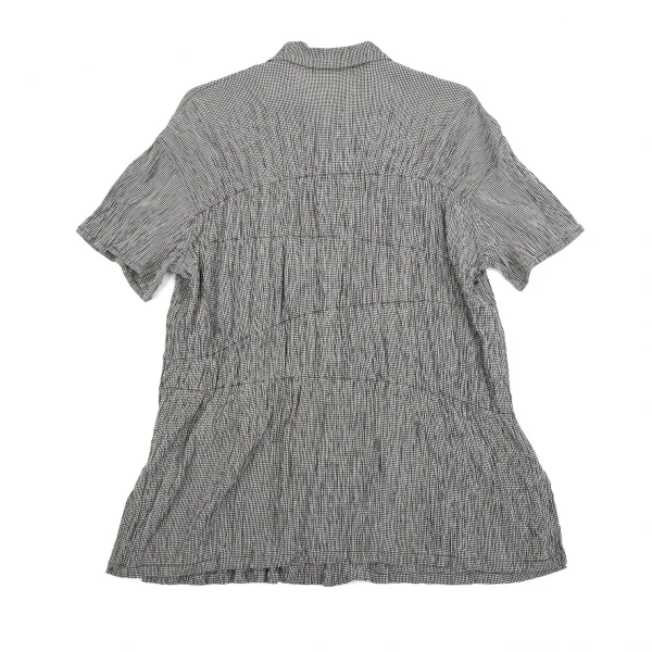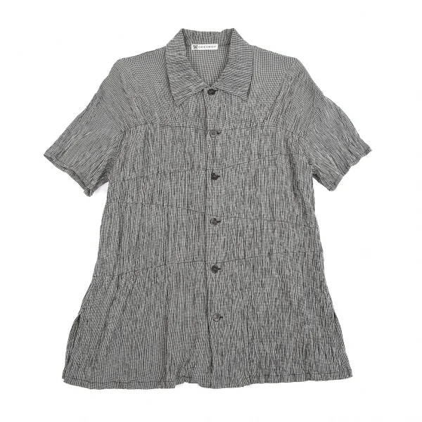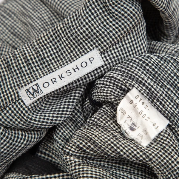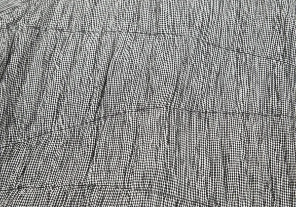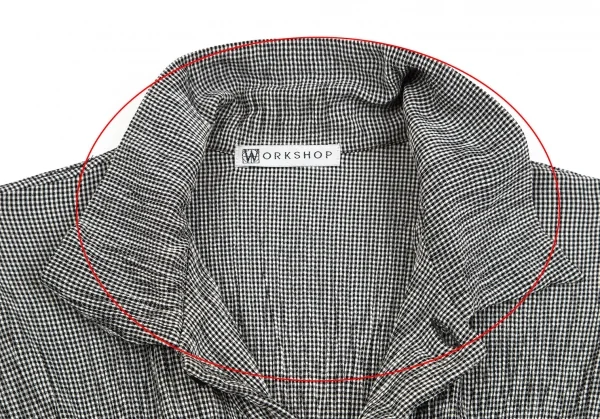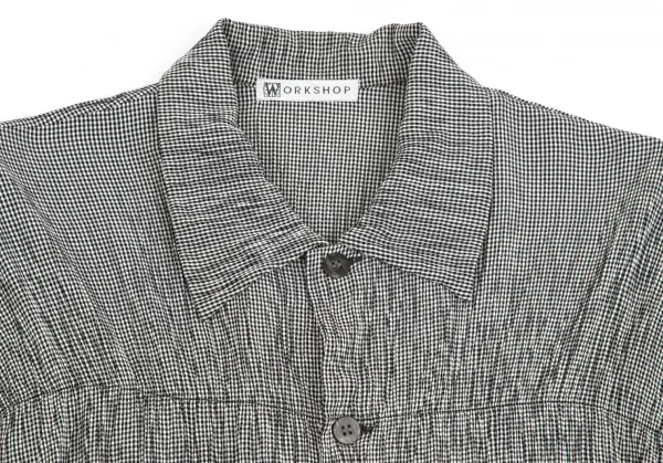 ワークショップWORKSHOP ギャザーチェックブラウス 黒オフM位