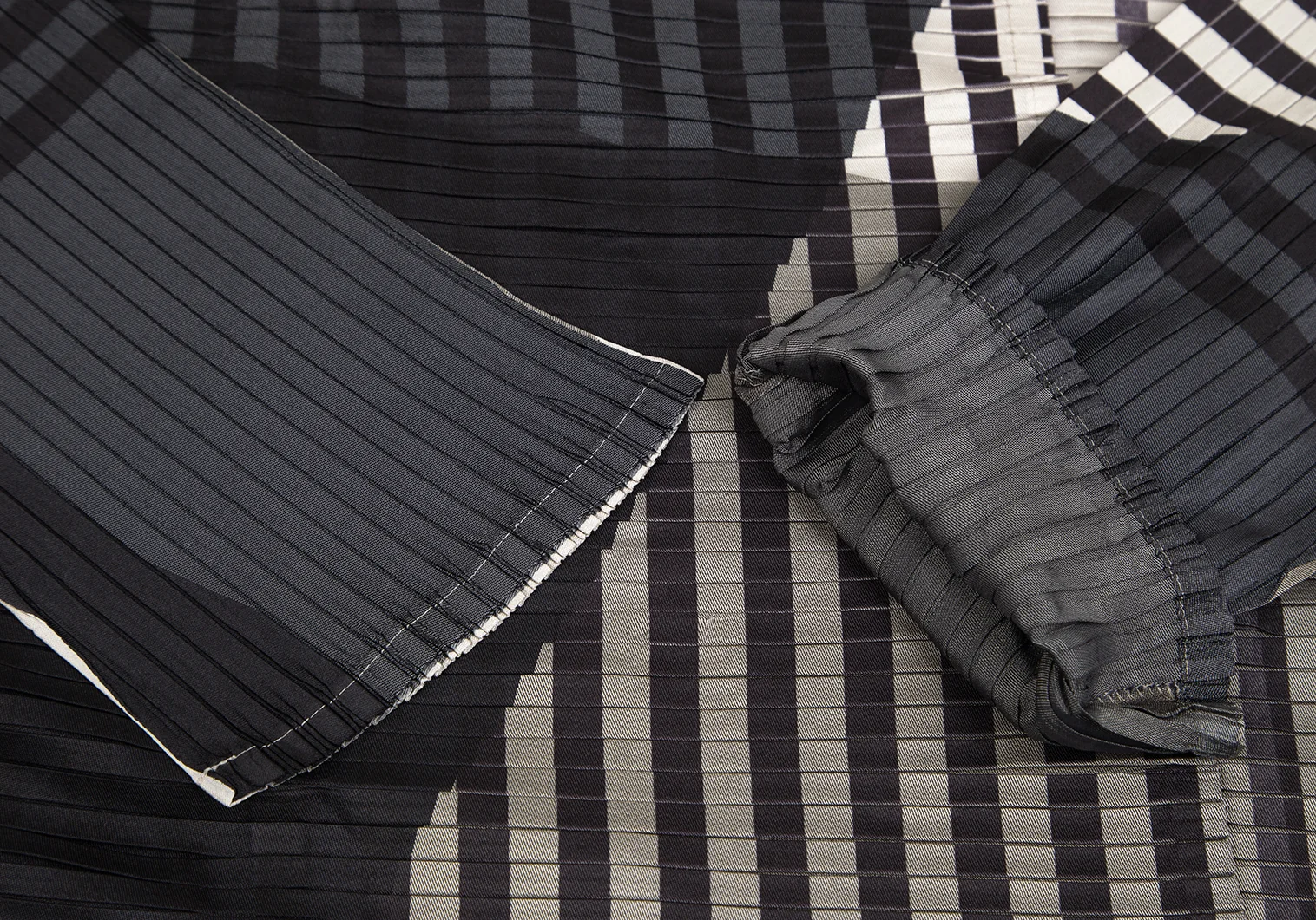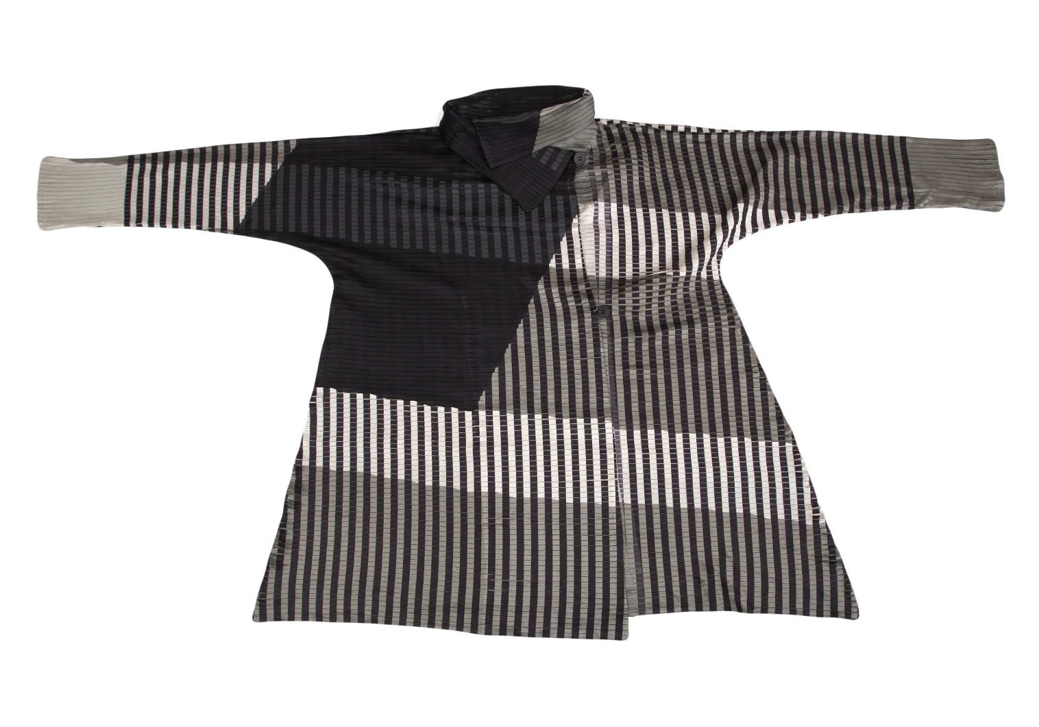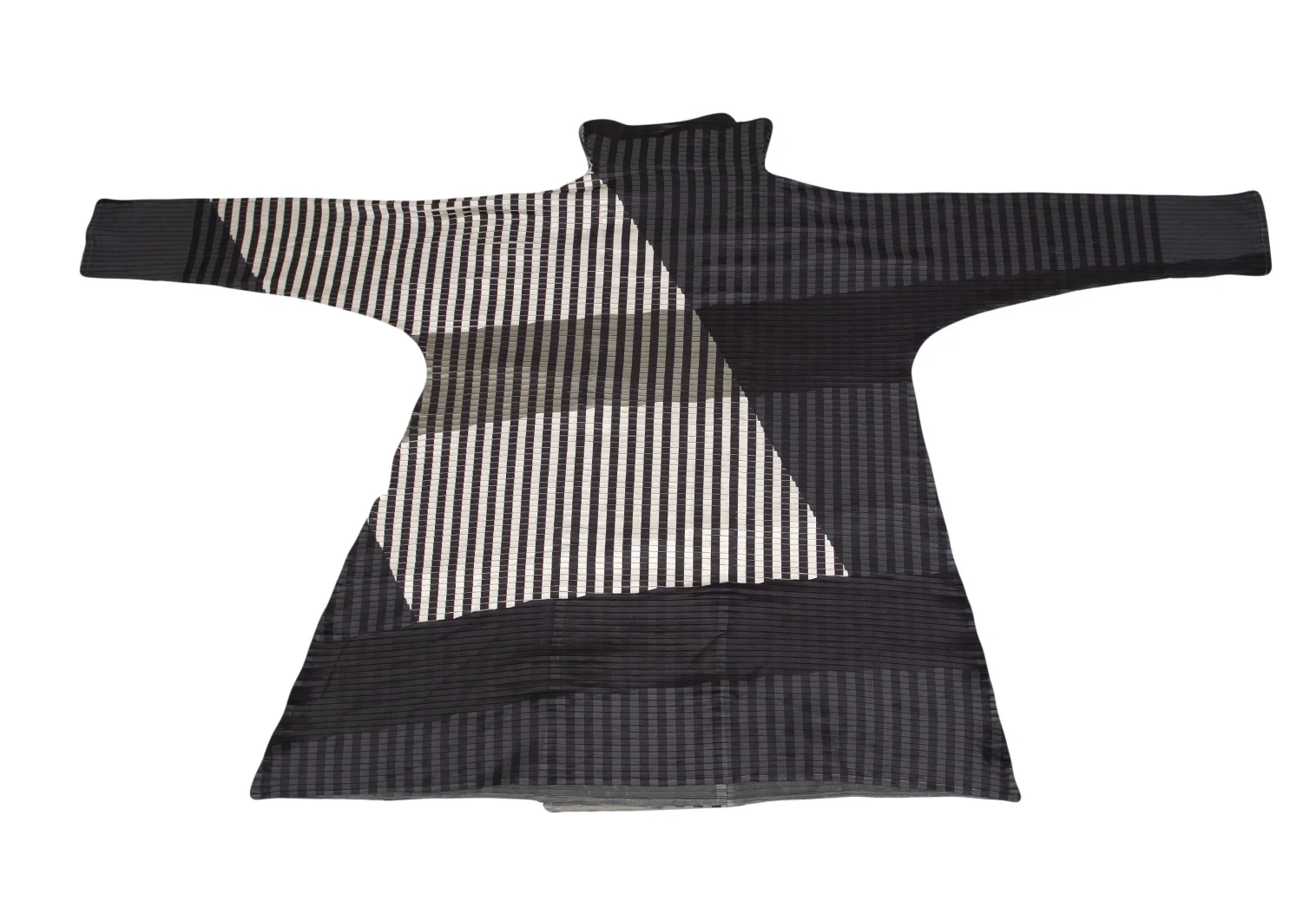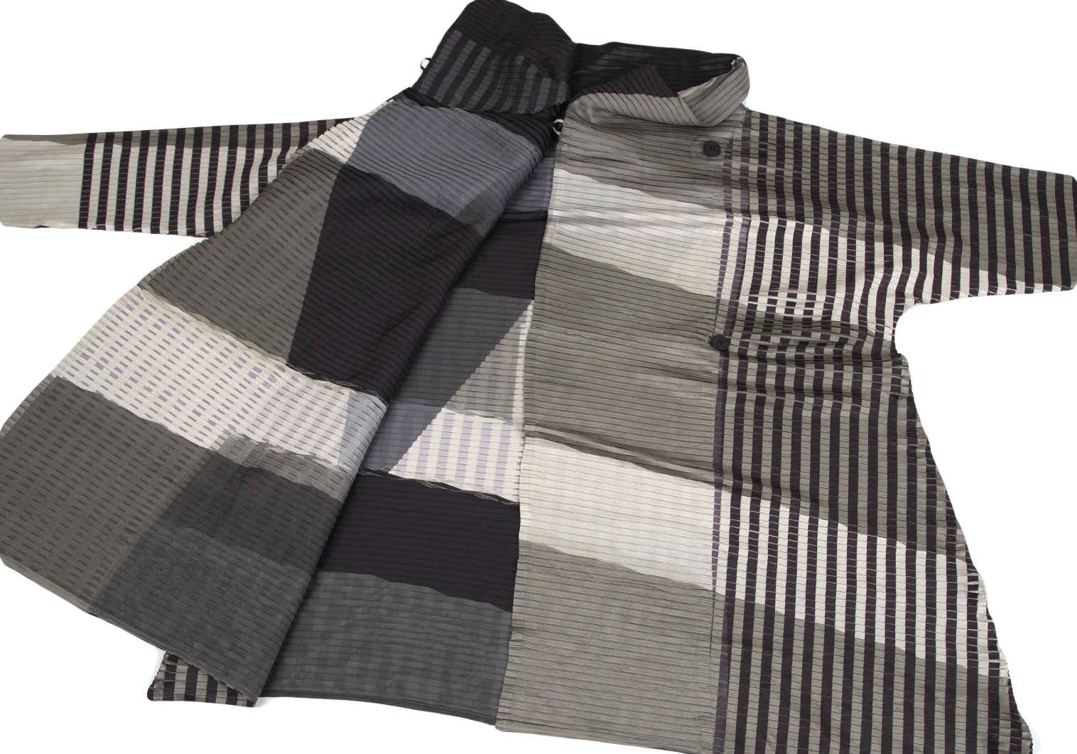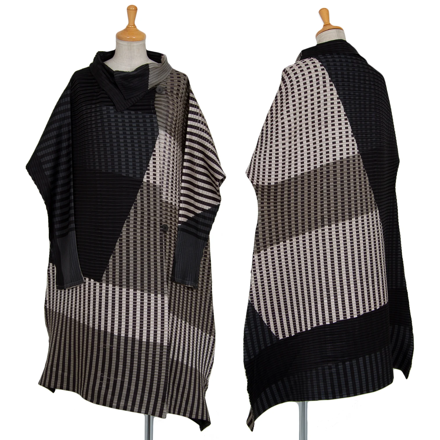 イッセイミヤケISSEY MIYAKE チェックストライププリーツダブルコート 黒ベージュ他2
