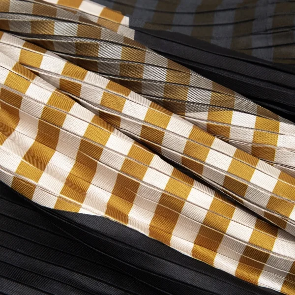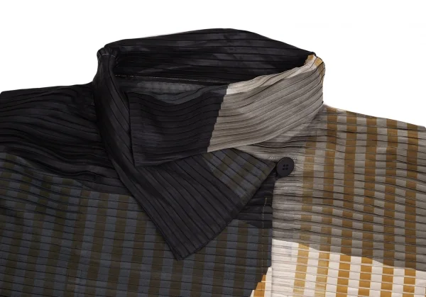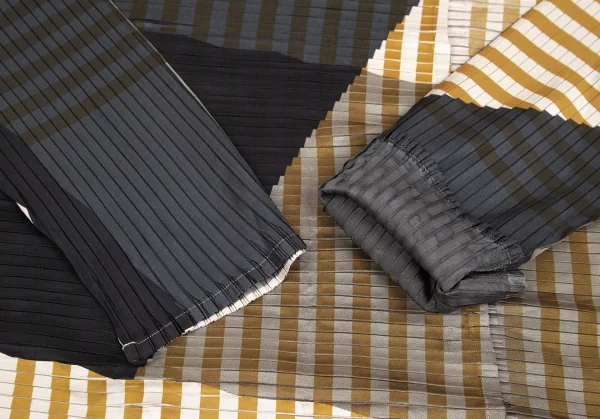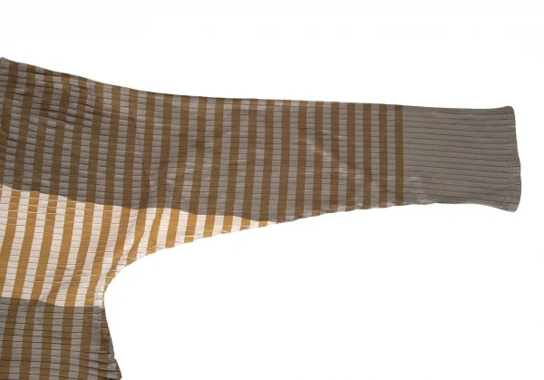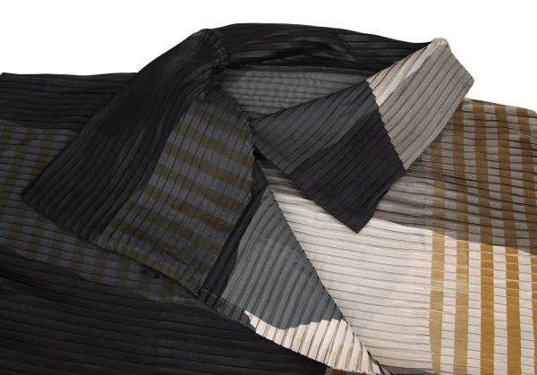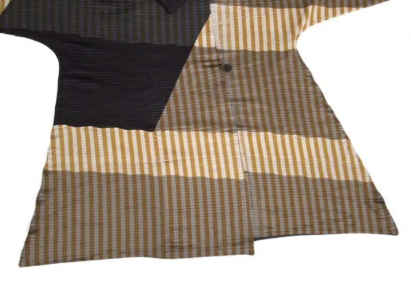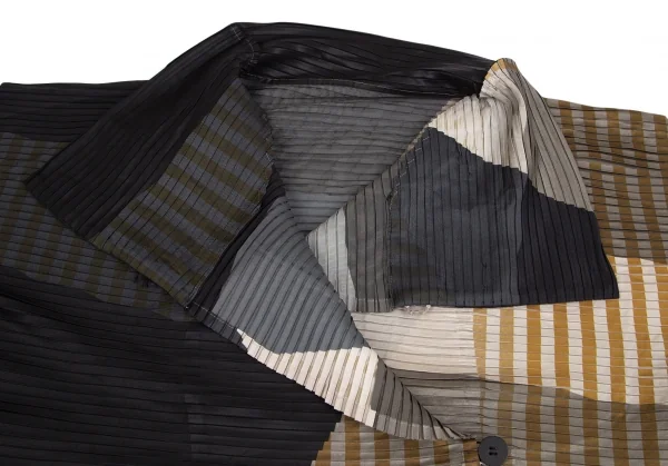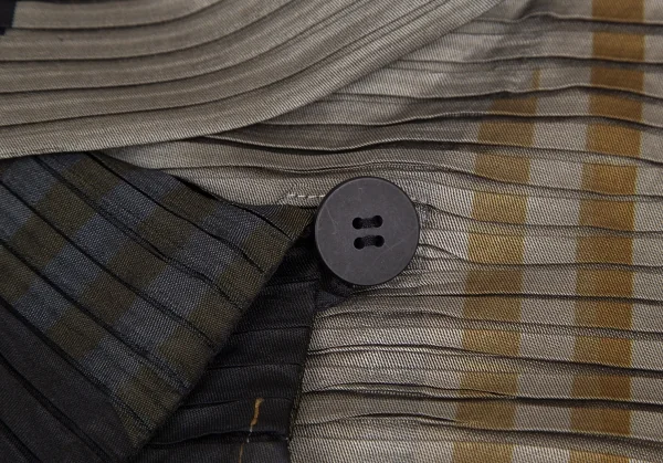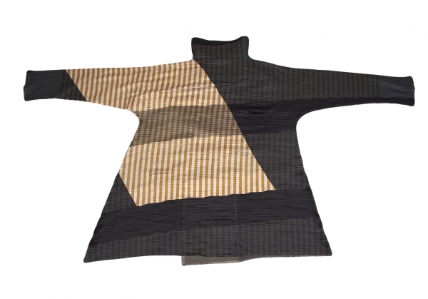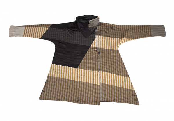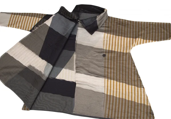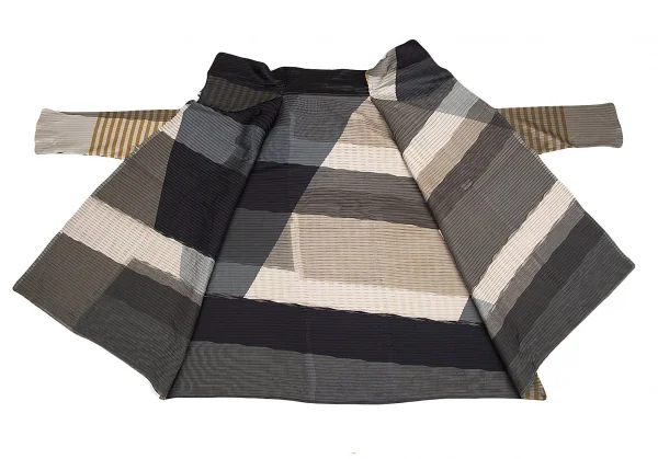 イッセイミヤケISSEY MIYAKE チェックストライププリーツダブルコート 黒ベージュ他2