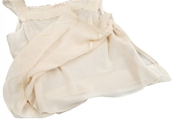 透け感のある生地です。ペチコートが付属します。目立ったシミ、汚れ、ほつれ等なくいい状態です。クリーニング済み