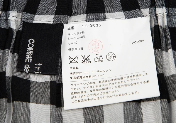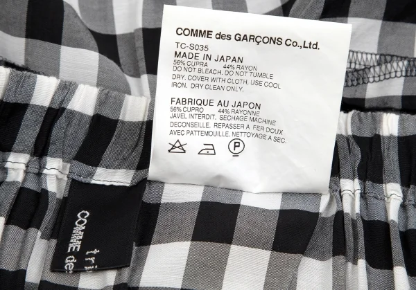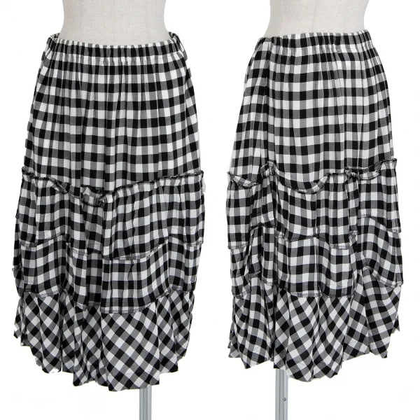 トリコ コムデギャルソンtricot COMME des GARCONS キュプラレーヨンギンガムチェック切替スカート 白黒M位