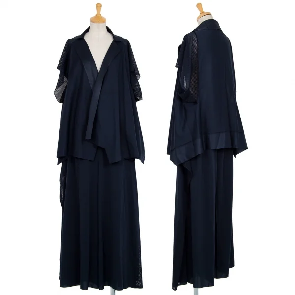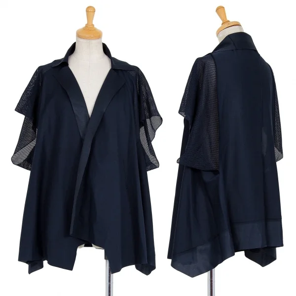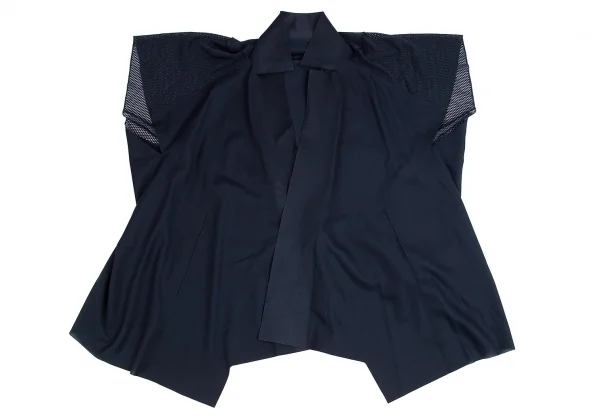 132 5. イッセイミヤケ 132 5. ISSEY MIYAKE メッシュ切替ベルトノースリーブジャケット 紺3