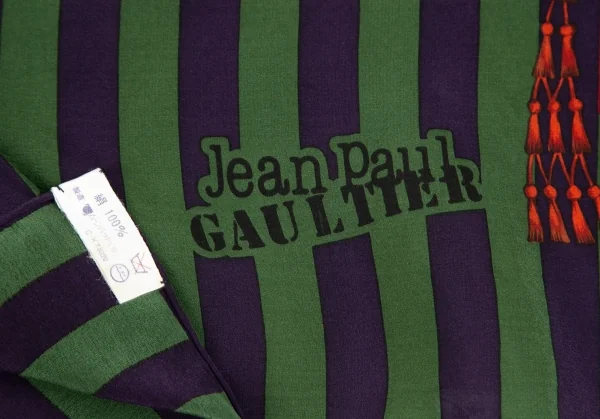 ジャンポールゴルチエJean Paul GAULTIER シルクボーダープリントスカーフ 緑紫