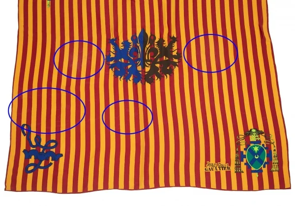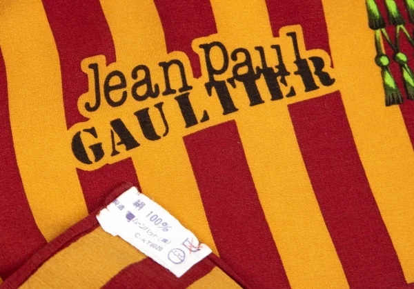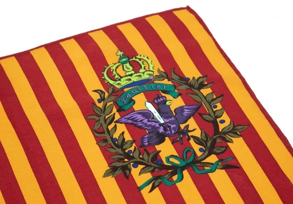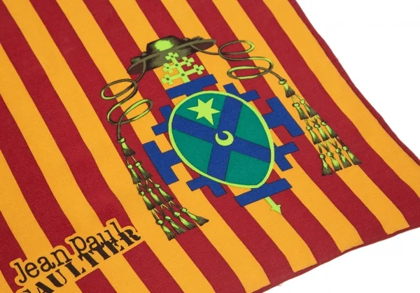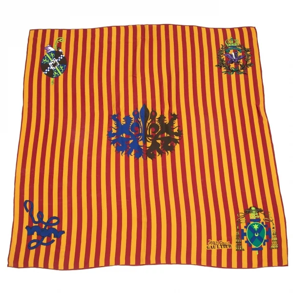 ジャンポールゴルチエJean Paul GAULTIER シルクボーダープリントスカーフ オレンジ赤