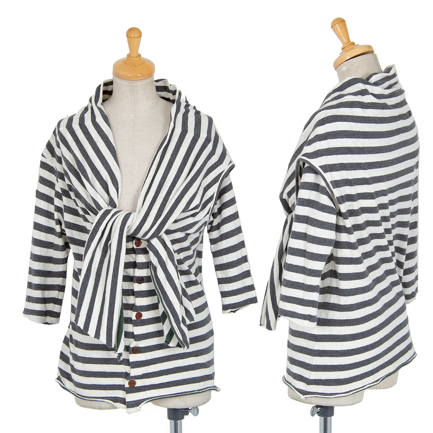 ワイズY's ボーダーストールカラートップス オフグレー2
