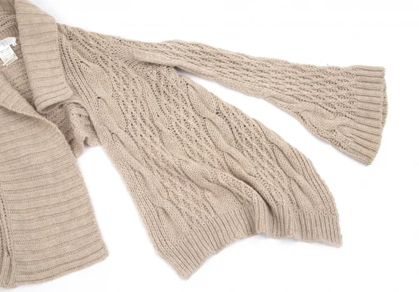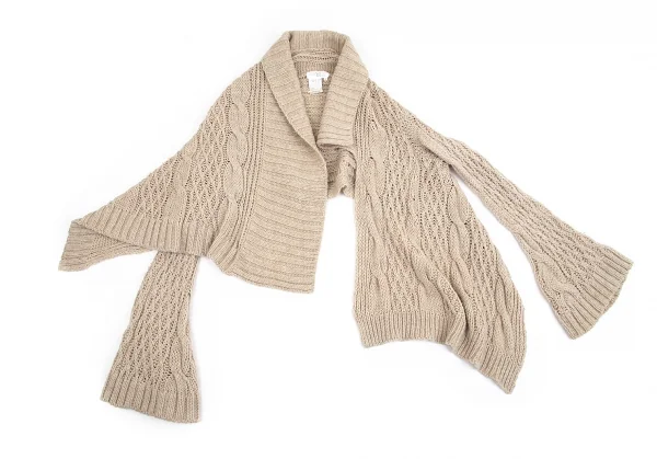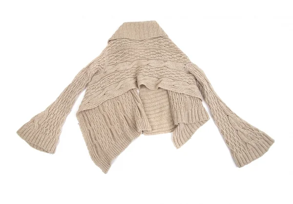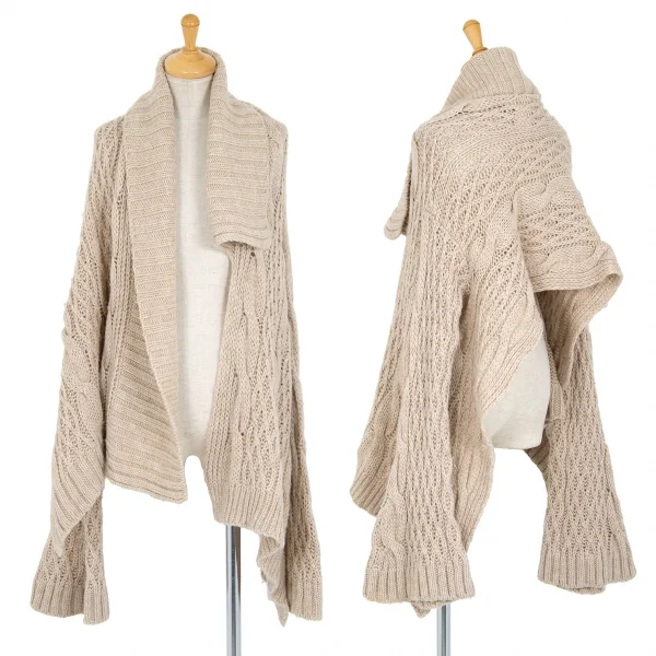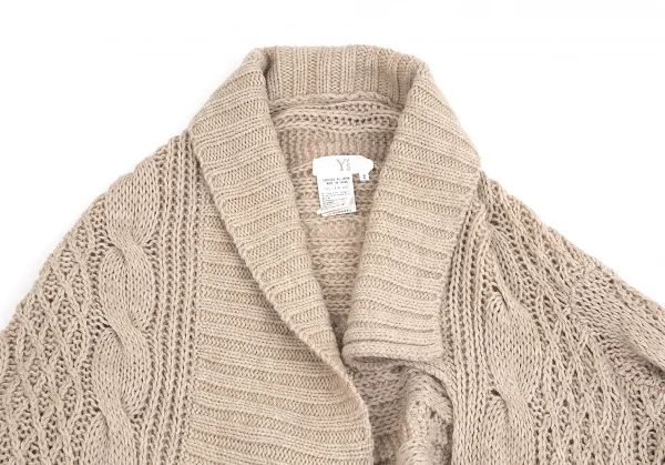 ワイズY's 変形ケーブルニットボタンレスカーディガン ベージュ2