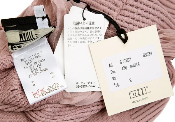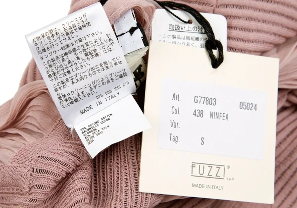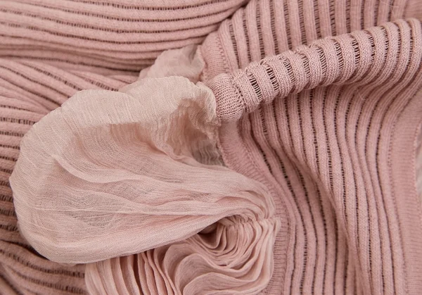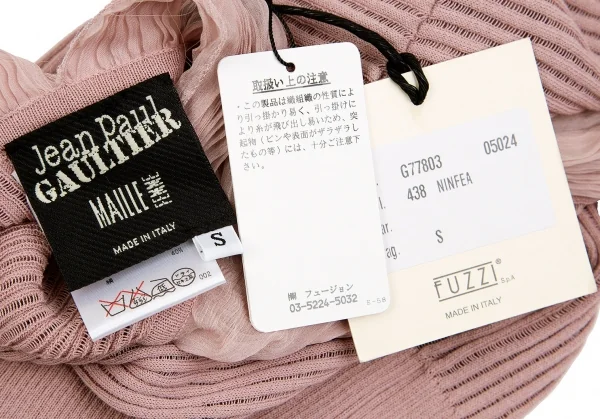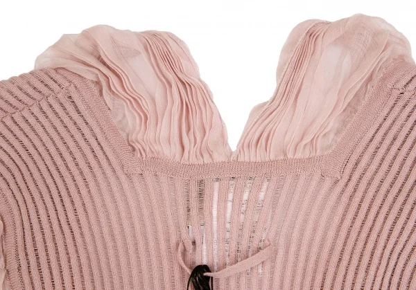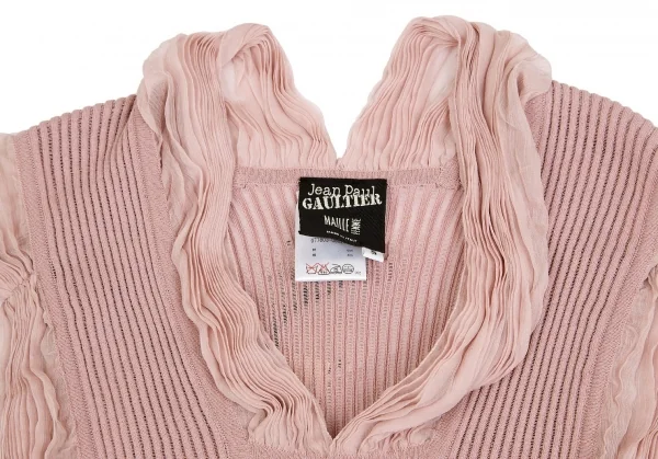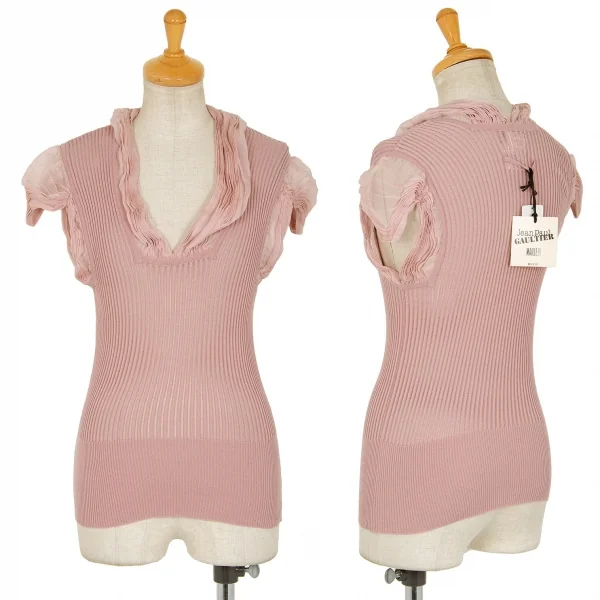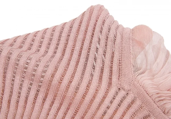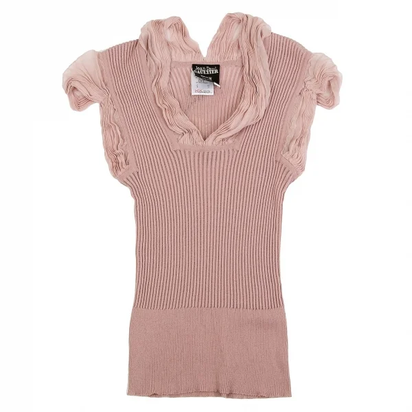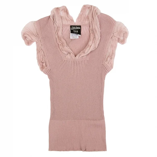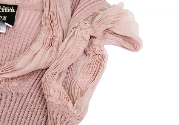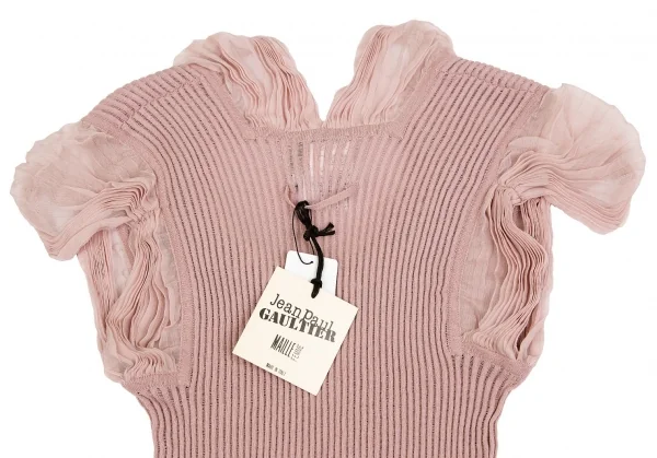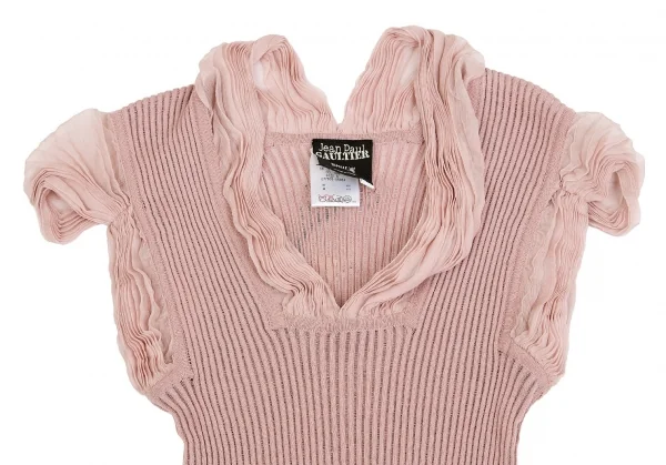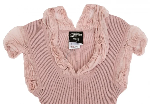 ジャンポールゴルチエ マイユファムJean Paul GAULTIER MAILLE FEMME シフォン切替半袖リブニットコットンシルクトップス ピンクS