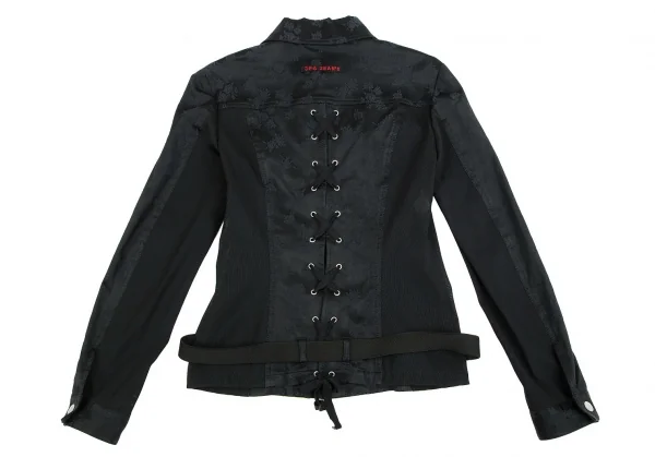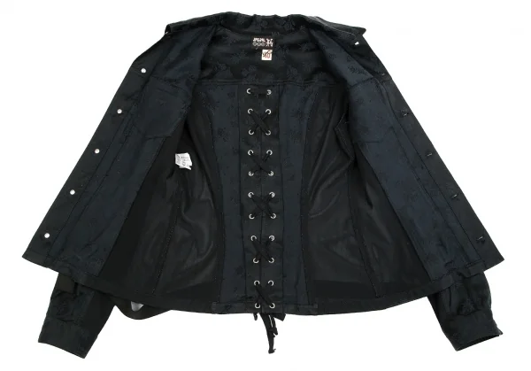 ジャンポールゴルチエJean Paul GAULTIER PARIS 花柄ジャガード切替レースアップトラックジャケット 黒40