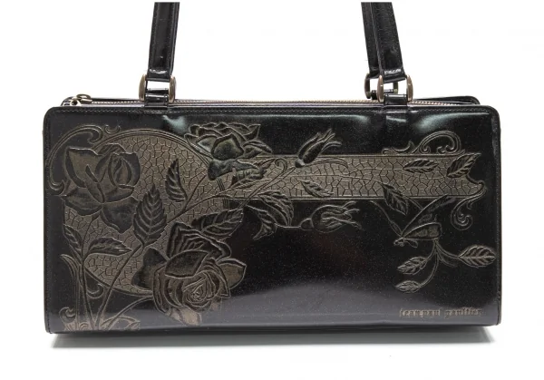 ジャンポールゴルチエJean Paul GAULTIER ニューローズラメエナメルハンドバッグ 黒