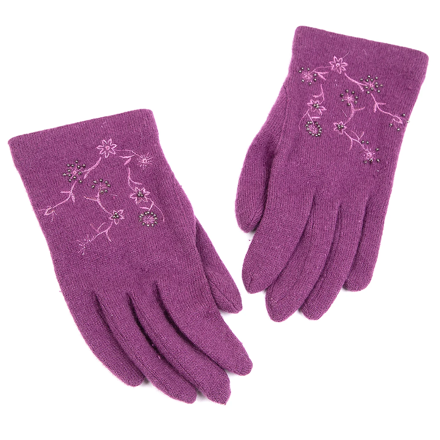 シビラSybilla ビーズ装飾ニットグローブ 紫