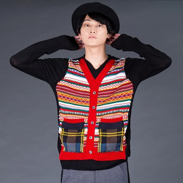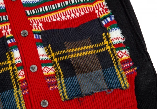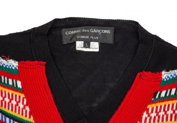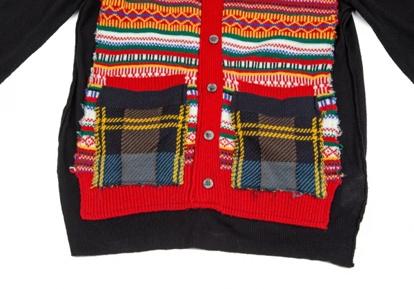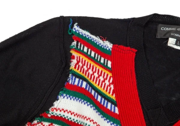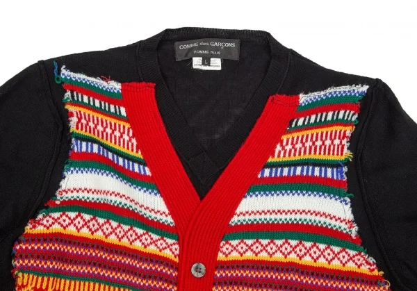 コムデギャルソン オムプリュスCOMME des GARCONS HOMME PLUS マルチボーダーカーディガンレイヤードニット 黒マルチL