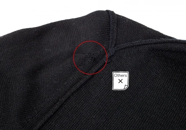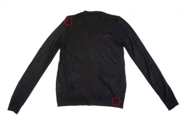 ボタンは飾りです。少し透け感のある生地です。右袖先・後ろ左肩・裾に補修跡があります(画像参照)。その他目立ったシミ、汚れ、ほつれ等ありません。クリーニング済み