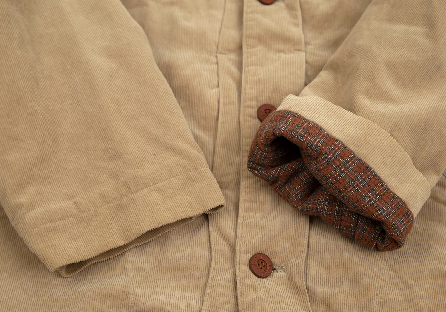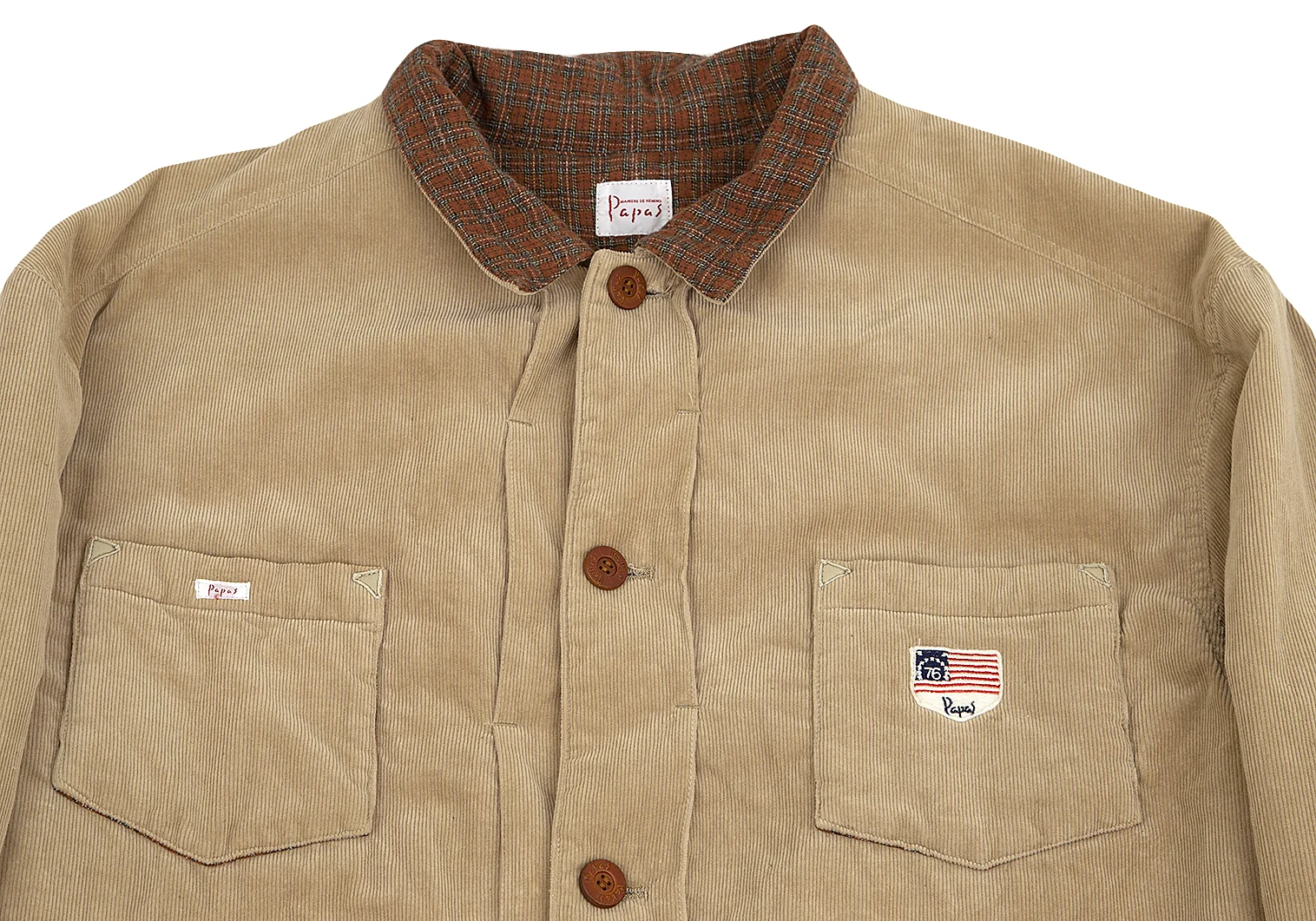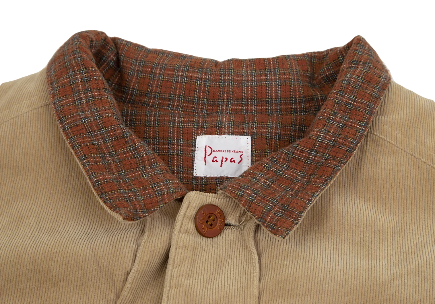 パパスPapas コーデュロイ裏ネルチェック中綿ジャケット ベージュL