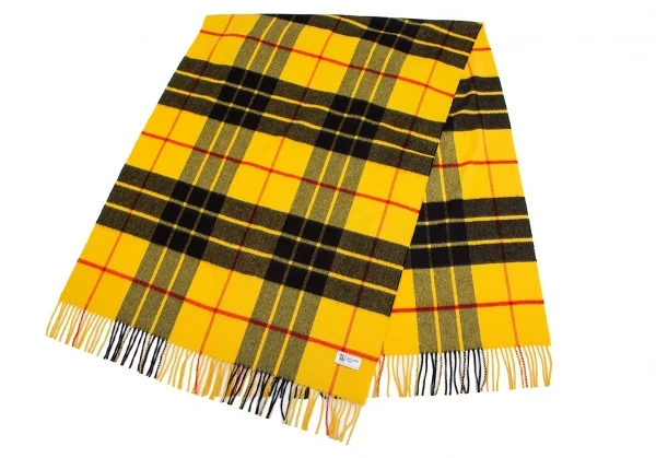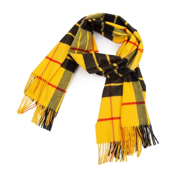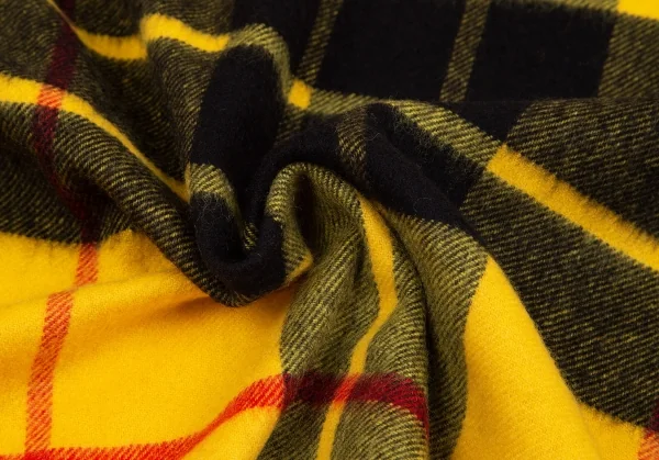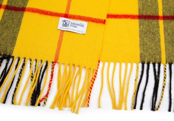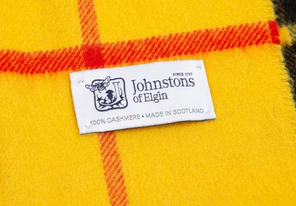 ジョンストンズjohnstons of elgin カシミヤチェックフリンジ大判ストール 黄70×190