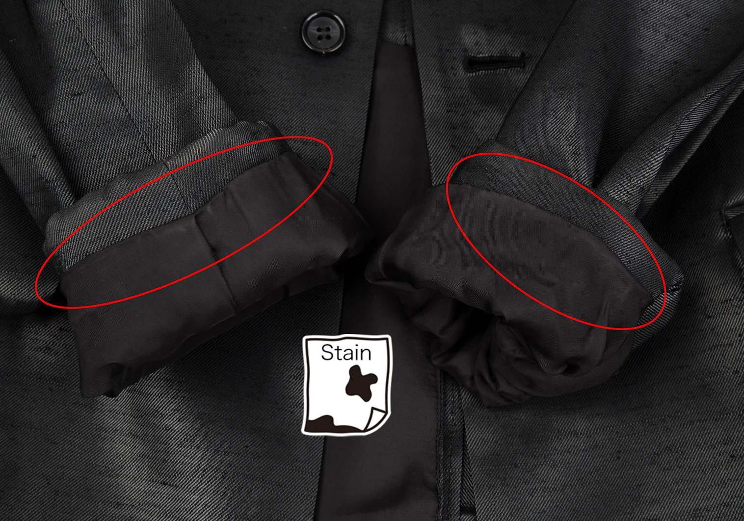 袖裏に薄汚れ、首裏のブランドタグに汚れがあります(画像参照)。その他目立ったシミ、汚れ、ほつれ等なくいい状態です。クリーニング済み