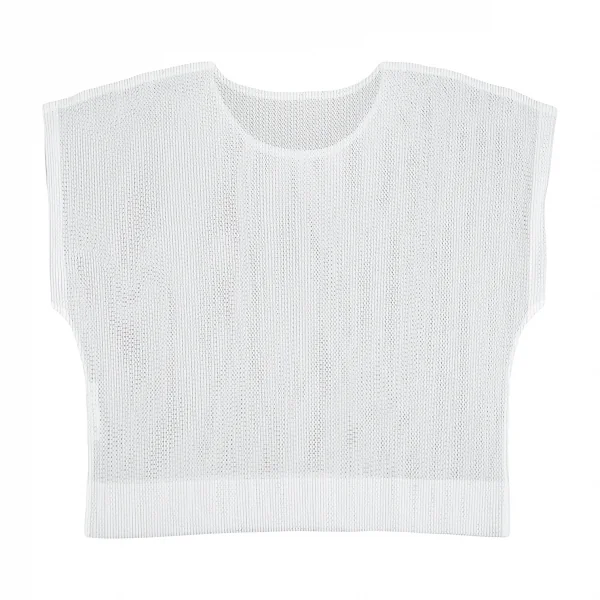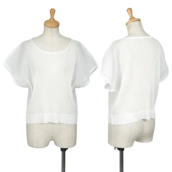プリーツプリーズPLEATS PLEASE メッシュフレンチスリーブトップス 白M位