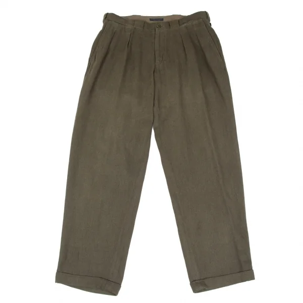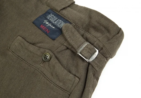レギュレーション ヨウジヤマモトメンREGULATION Yohji Yamamoto MEN 製品染めコットンシルクリネンサイドベルトパンツ カーキ2