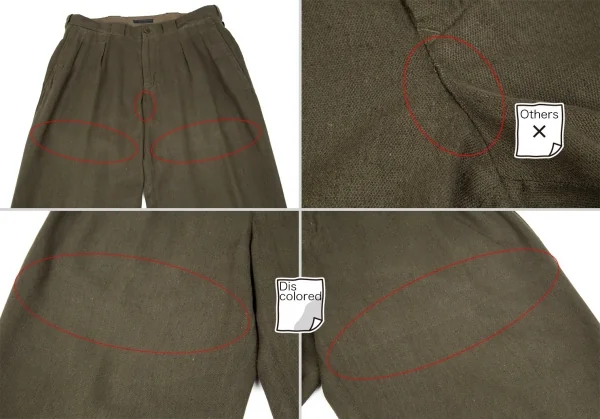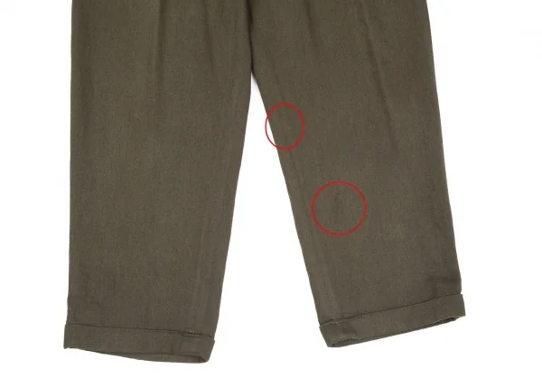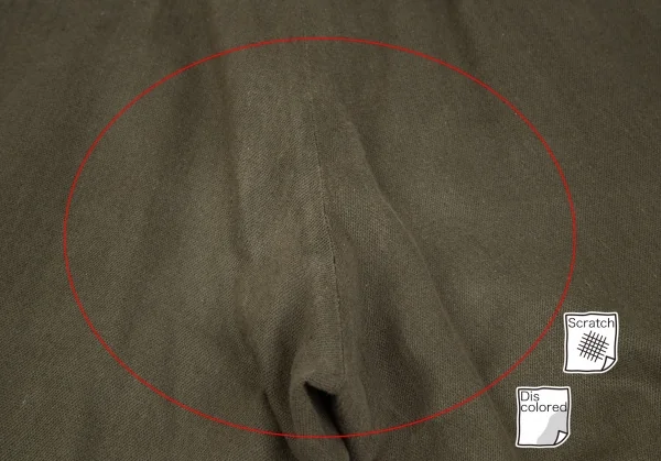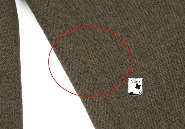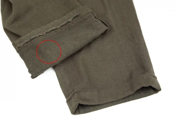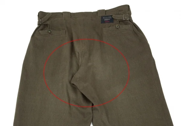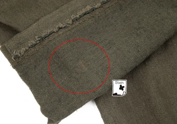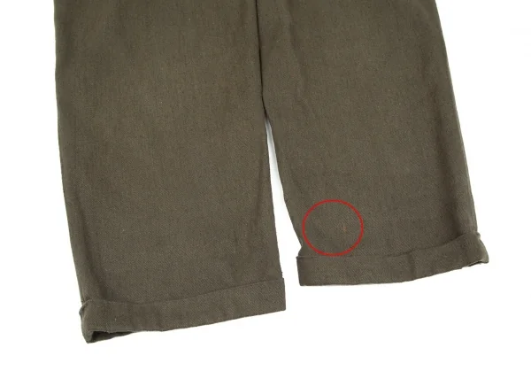 股下ステッチの補修あり、腿に少し色褪せ、前後裾・裾裏にシミ、ヒップにスレと色褪せがあります(画像参照)。その他目立ったシミ、汚れ、ほつれ等ありません。クリーニング済み