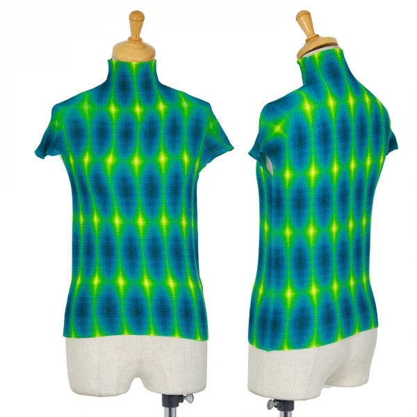 イッセイミヤケISSEY MIYAKE (T) グラデーションプリントブロックプリーツカットソー 青他3