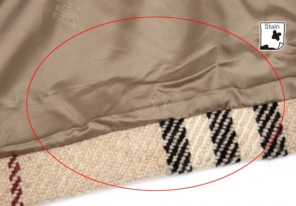 裏地裾に薄汚れがあります(写真参照)。その他に目立ったシミ、汚れ、ほつれ等なくいい状態です。クリーニング済み