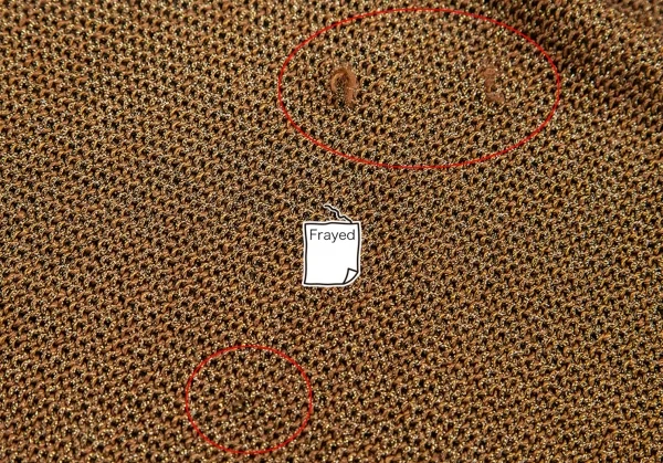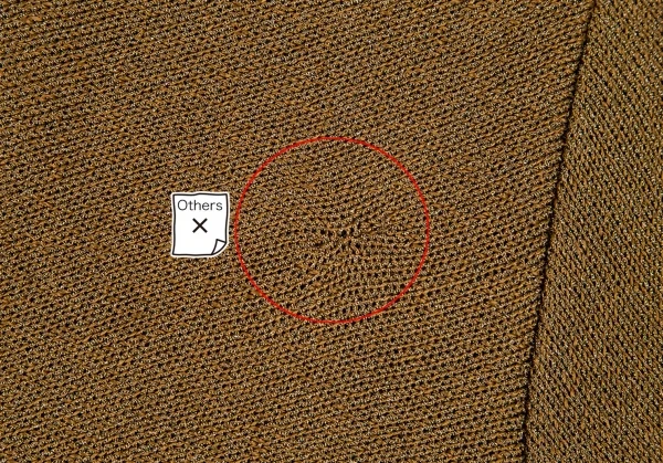 若干中が透けます。背中に穴の補修跡、背裏に補修跡・ほつれがあります(画像参照)。その他目立ったシミ、汚れ、ほつれ等ありません。クリーニング済み