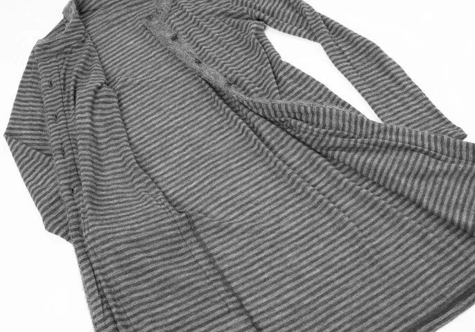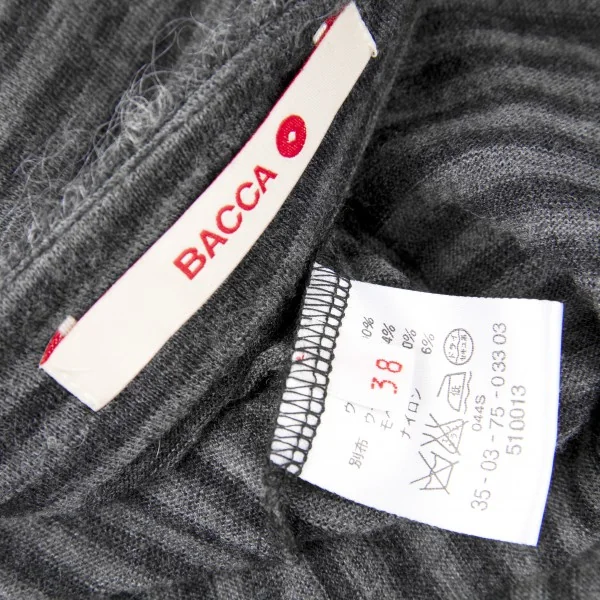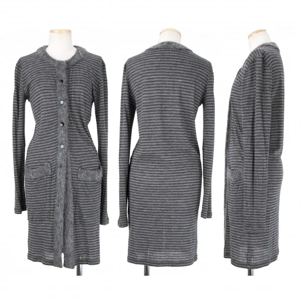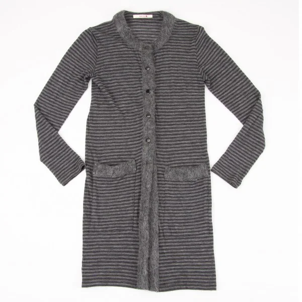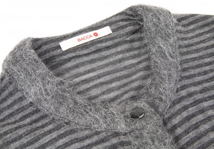 【SALE】バッカBACCA モヘヤパイピングボーダーロングカーディガン 黒グレー38