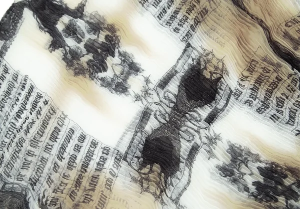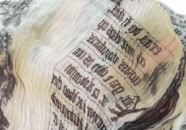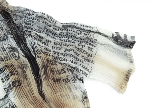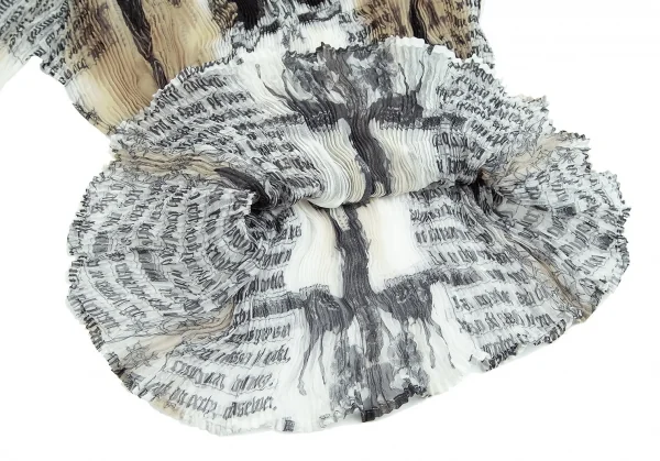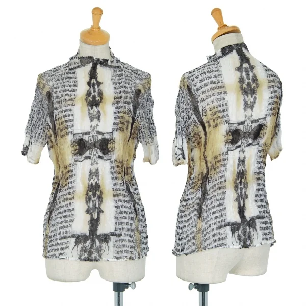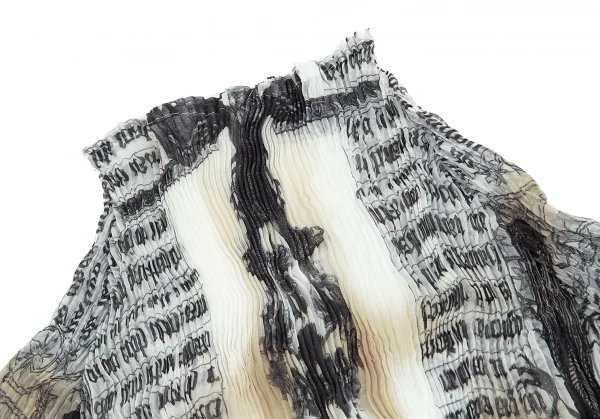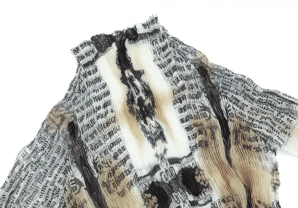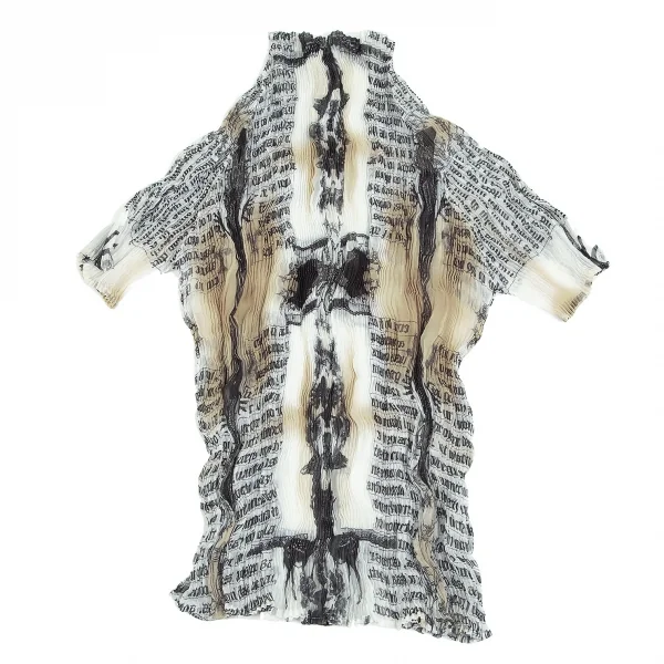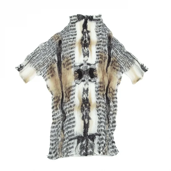 イッセイミヤケ ホワイトレーベルISSEY MIYAKE WHITE LABEL プリントハイネックプリーツ半袖カットソー 白茶2