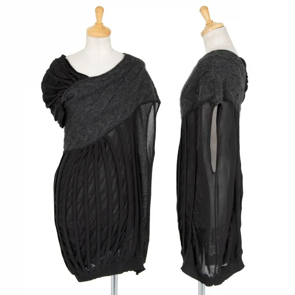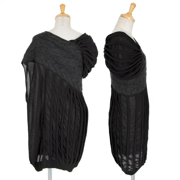 ミハラヤスヒロMIHARA YASUHIRO ニット切替デザインノースリーブ 黒F