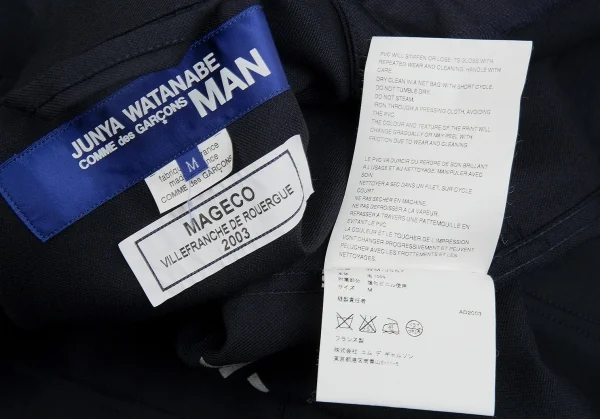 ジュンヤワタナベマン コムデギャルソンJUNYA WATANABE MAN COMME des GARCONSAGECOウールギャバクリアポケットジップブルゾン 紺M