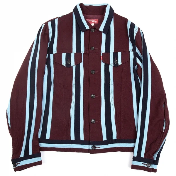 ジュンヤワタナベ マン コムデギャルソン×リーバイス JUNYA WATANABE MAN COMME des GARCONS×Levi's ストライプ切替ウールトラッカージャケット 茶青L